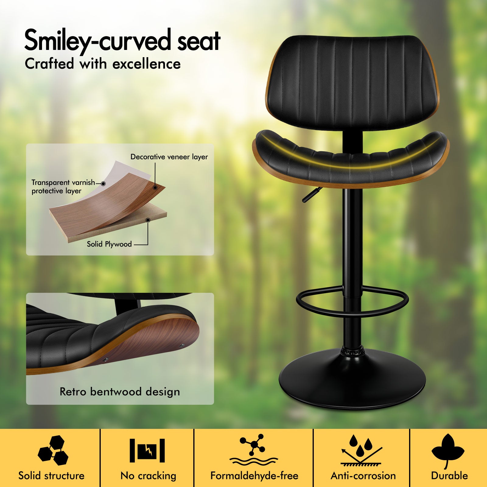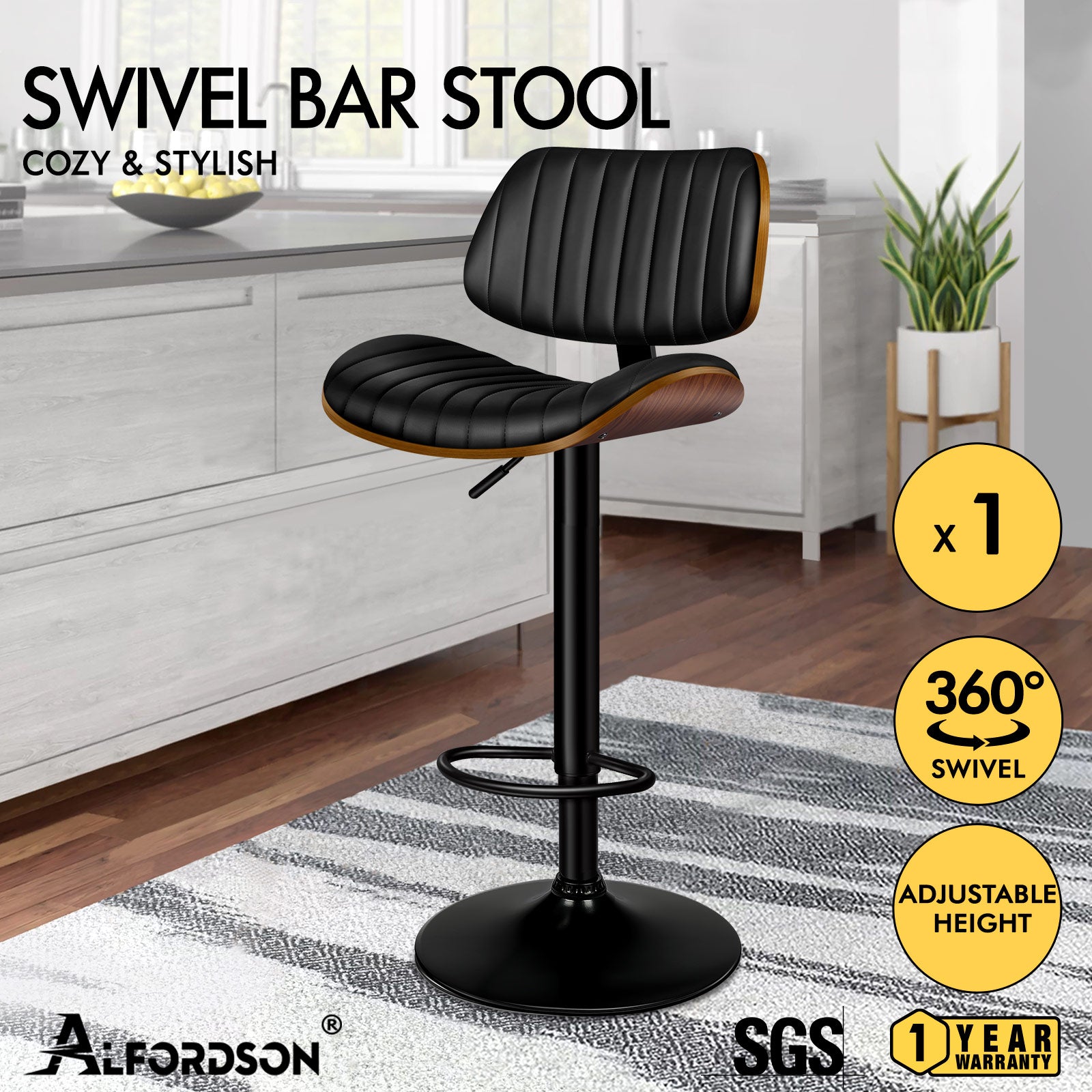 ALFORDSON 1x Bar Stool Kitchen Swivel Chair Wooden Leather Gas Lift Black
