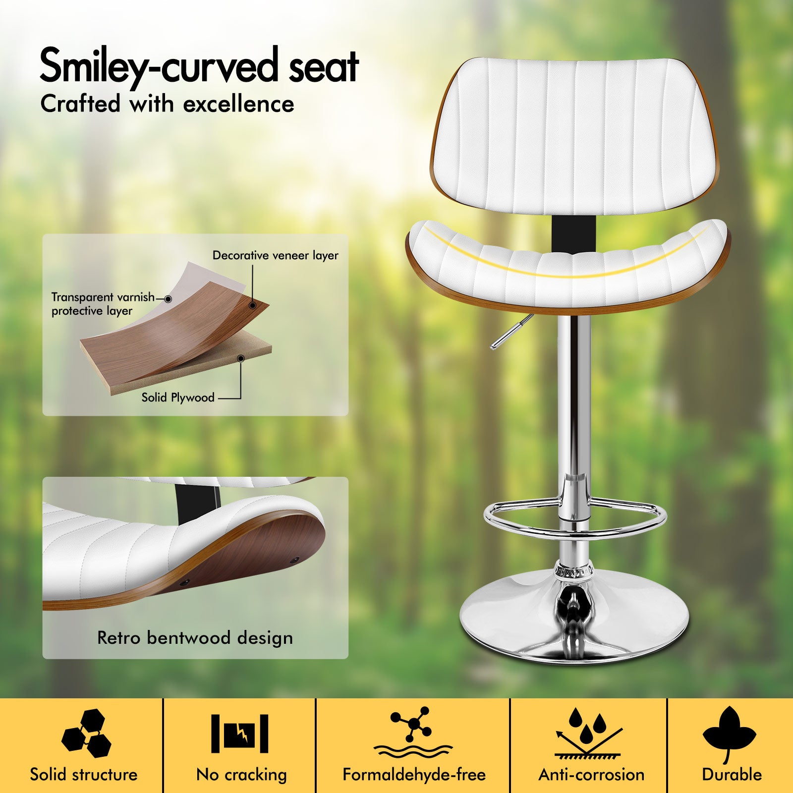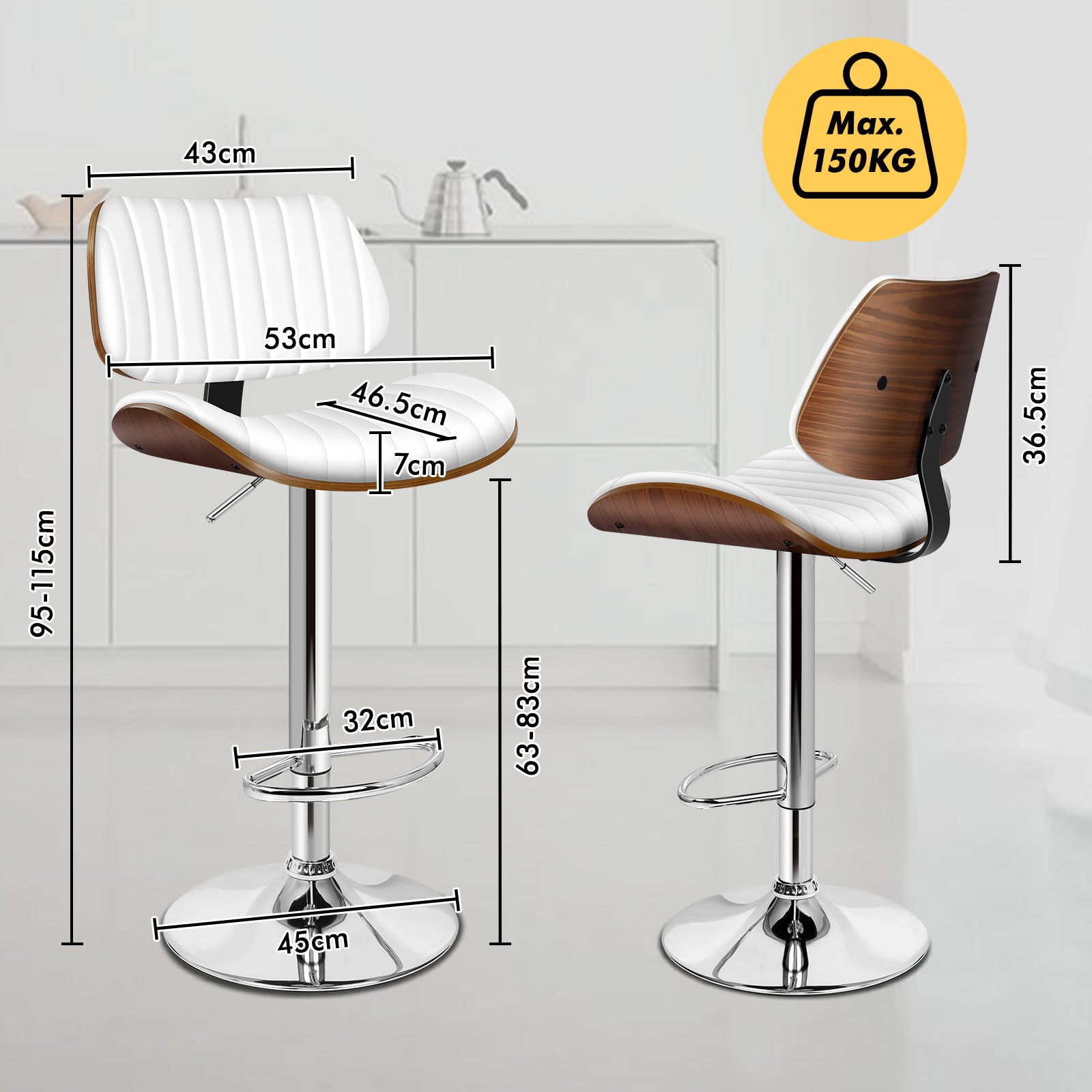 ALFORDSON 1x Bar Stool Kitchen Swivel Chair Wooden Leather Gas Lift White