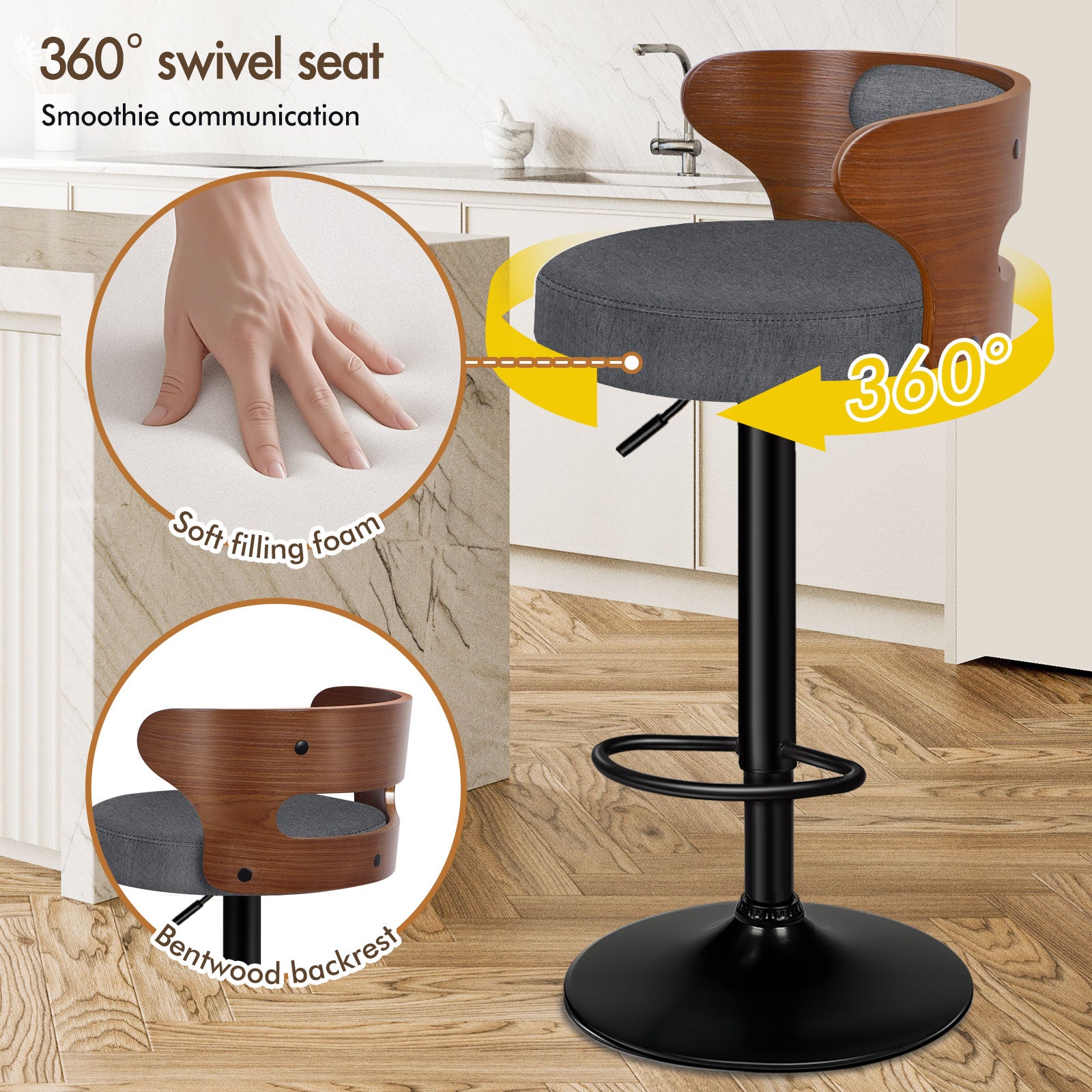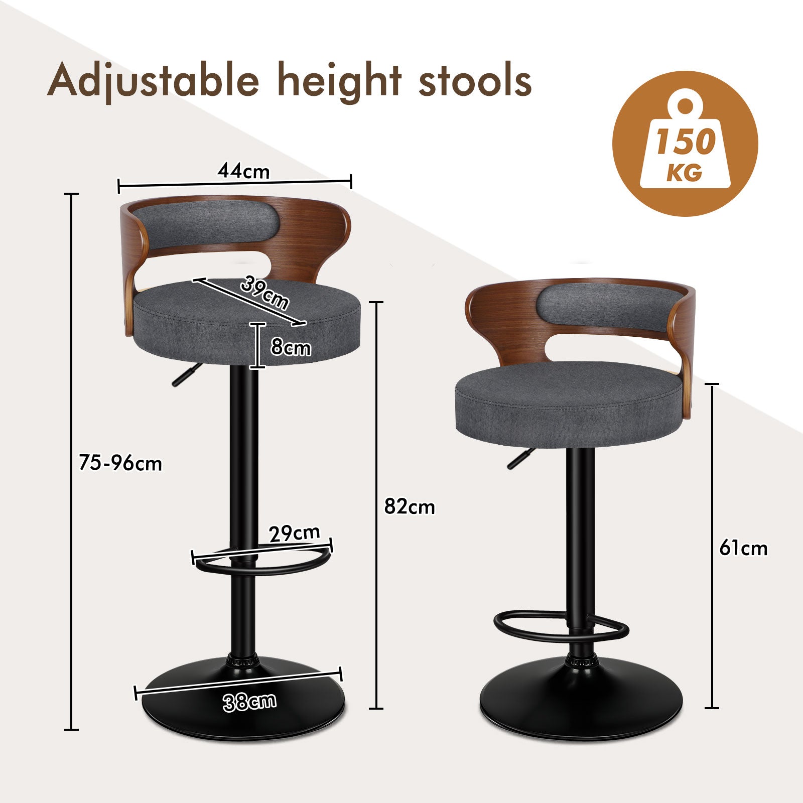 ALFORDSON 2x Bar Stool Kitchen Swivel Chair Wooden Linen Fabric Ramiro Grey