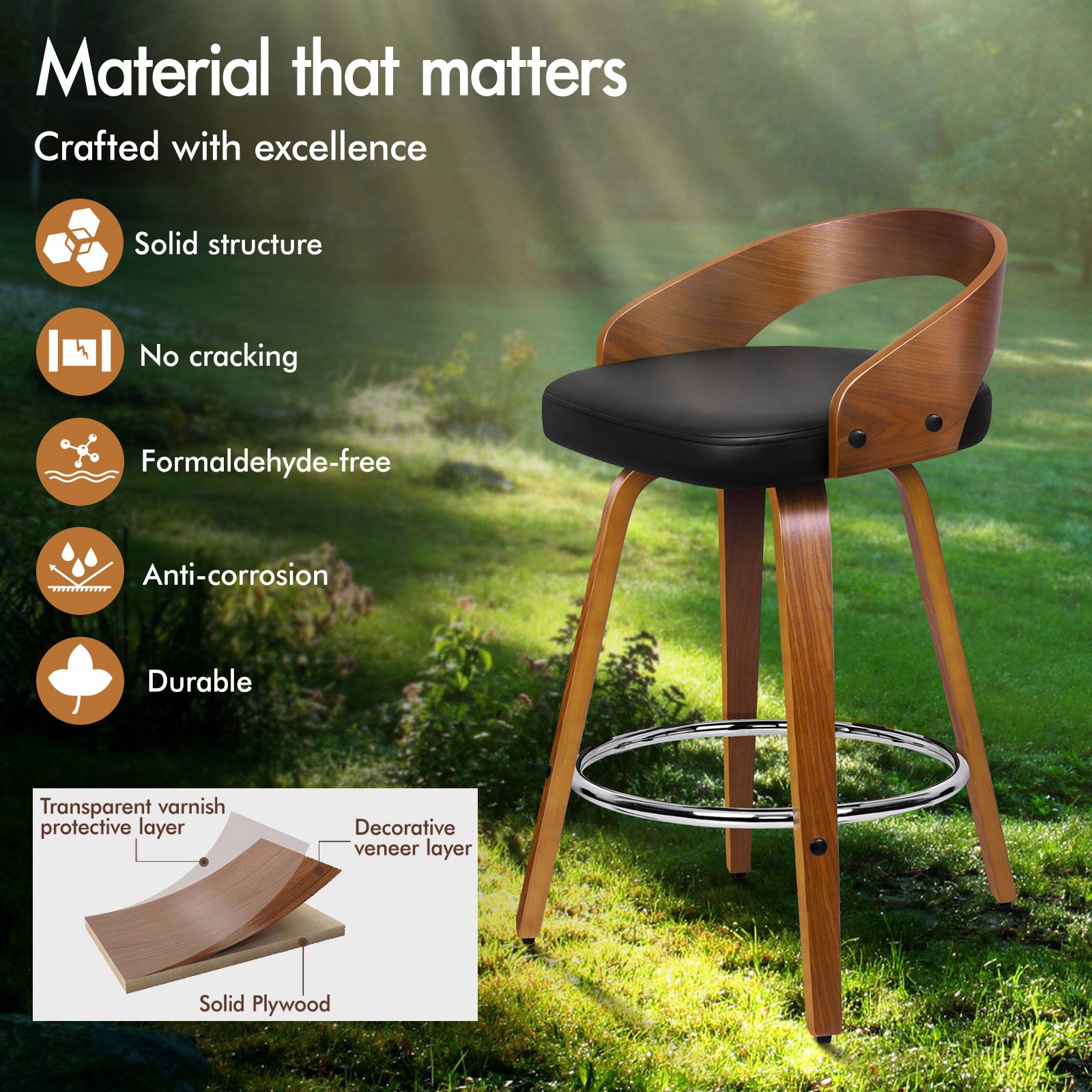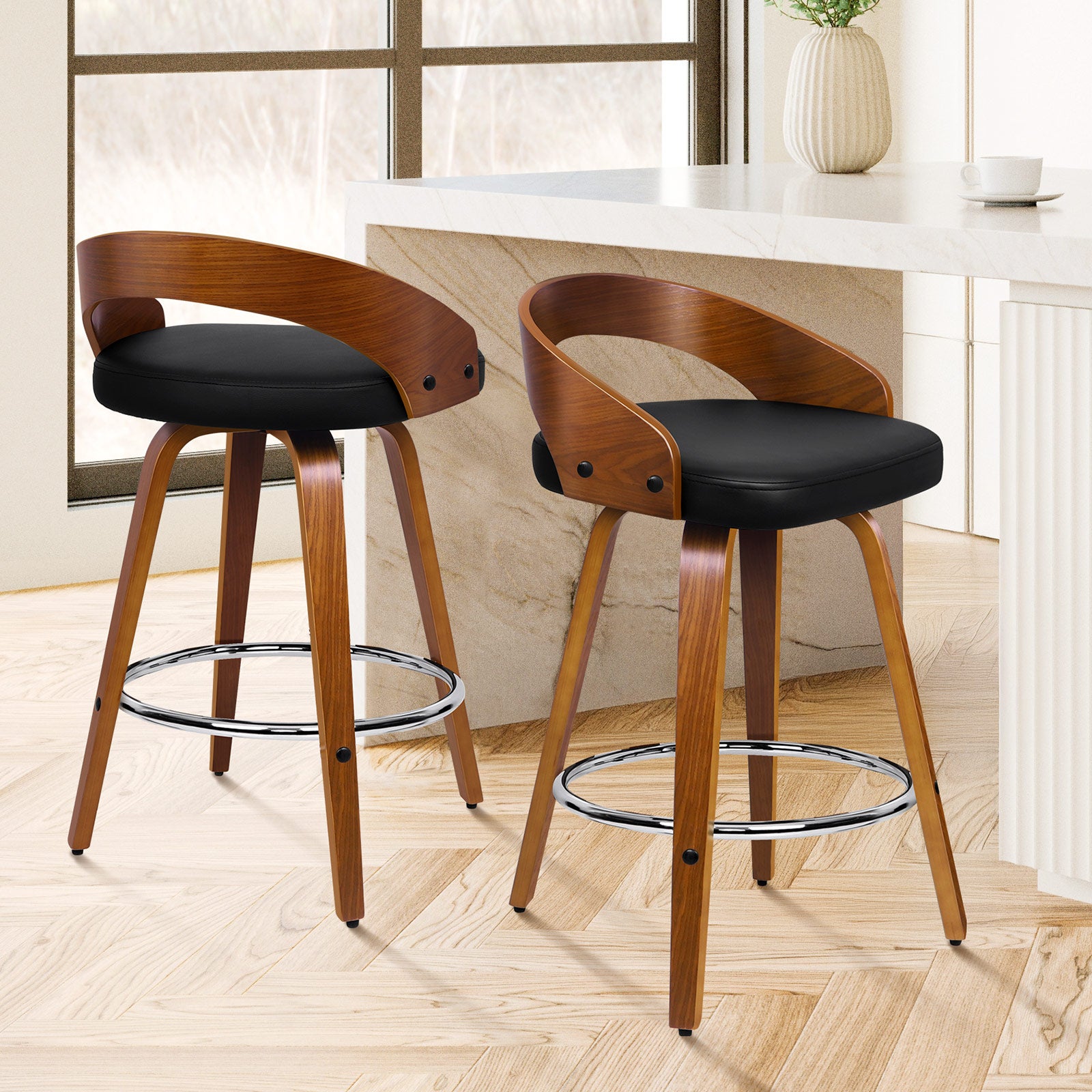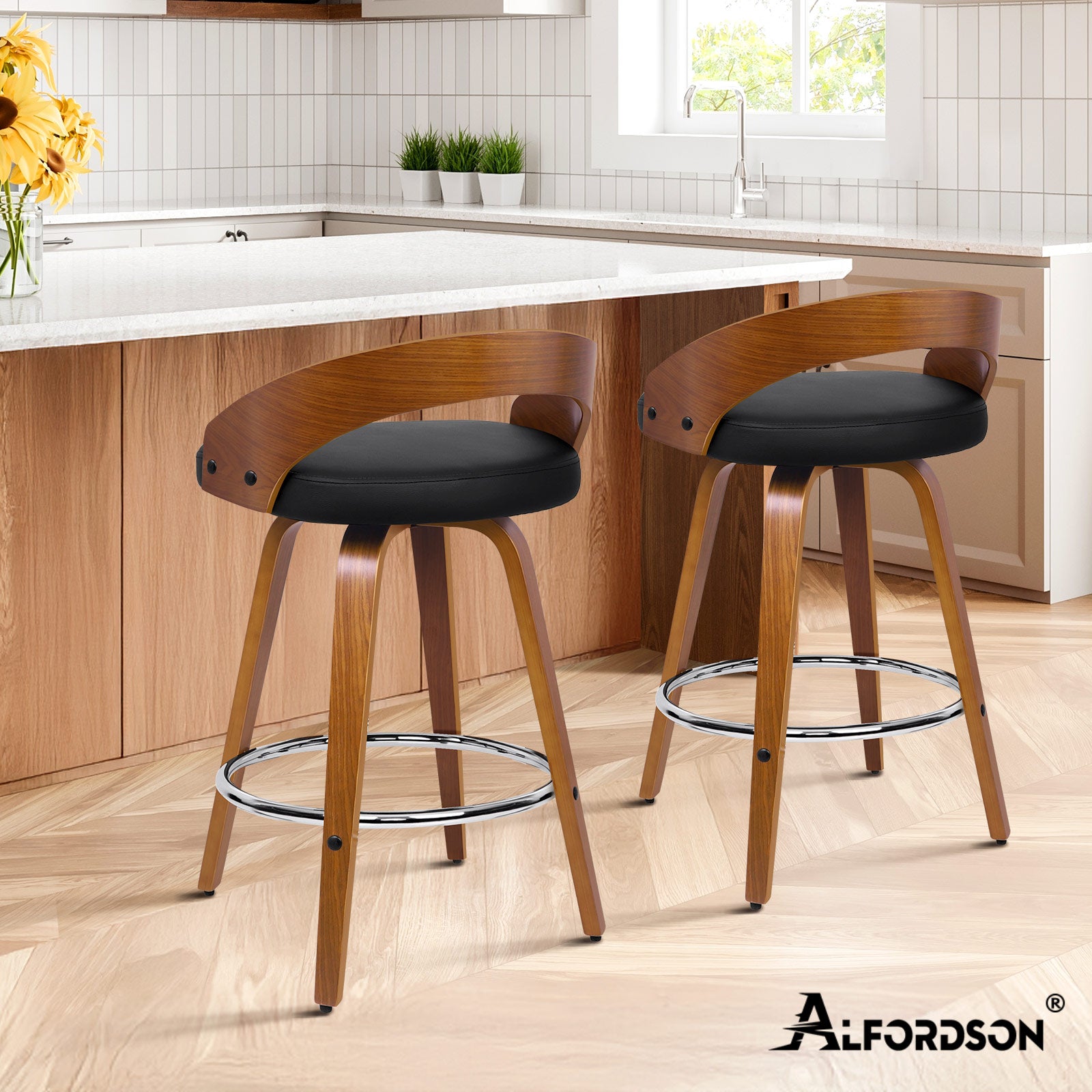 ALFORDSON 2x Swivel Bar Stools Caden Kitchen Wooden Dining Chair BLACK