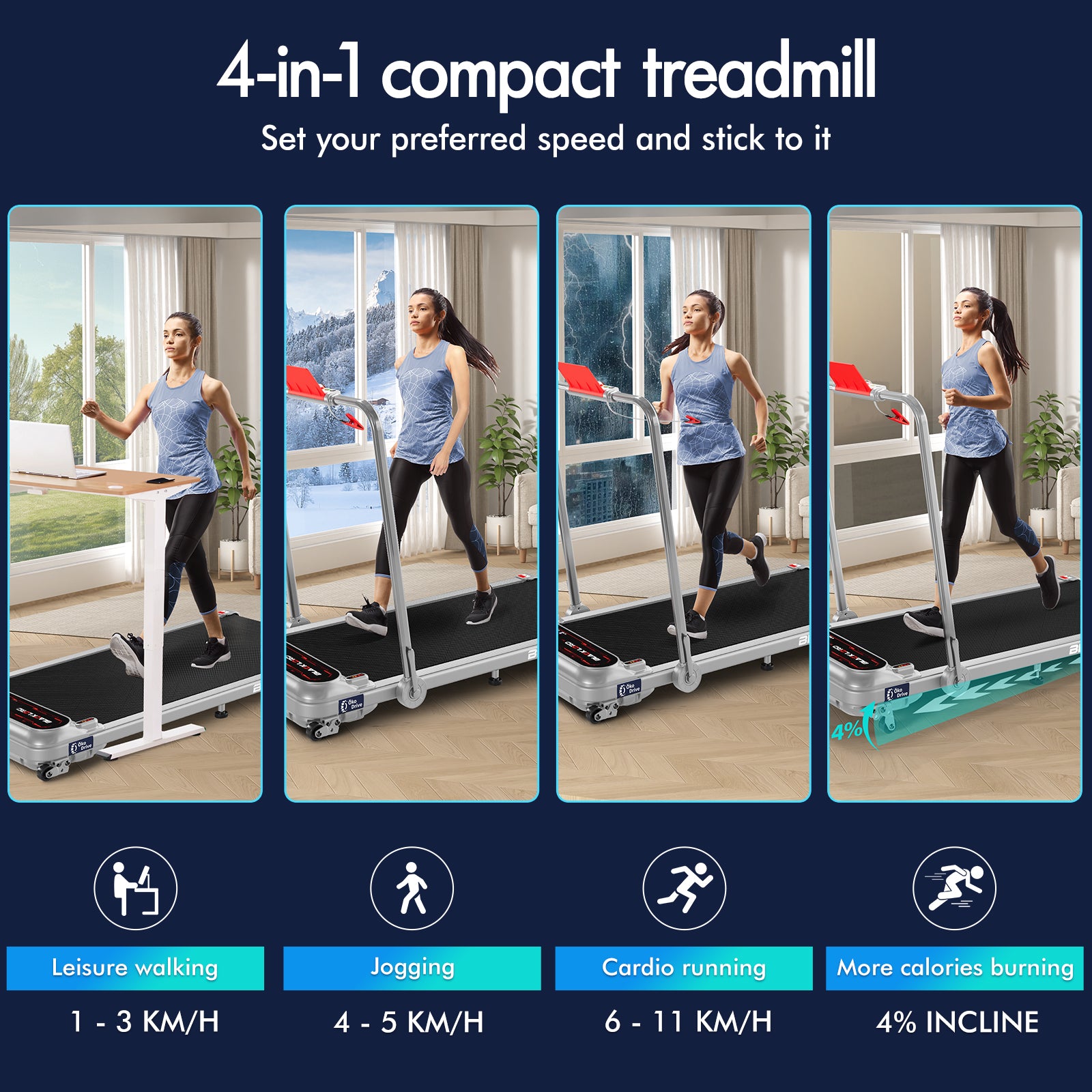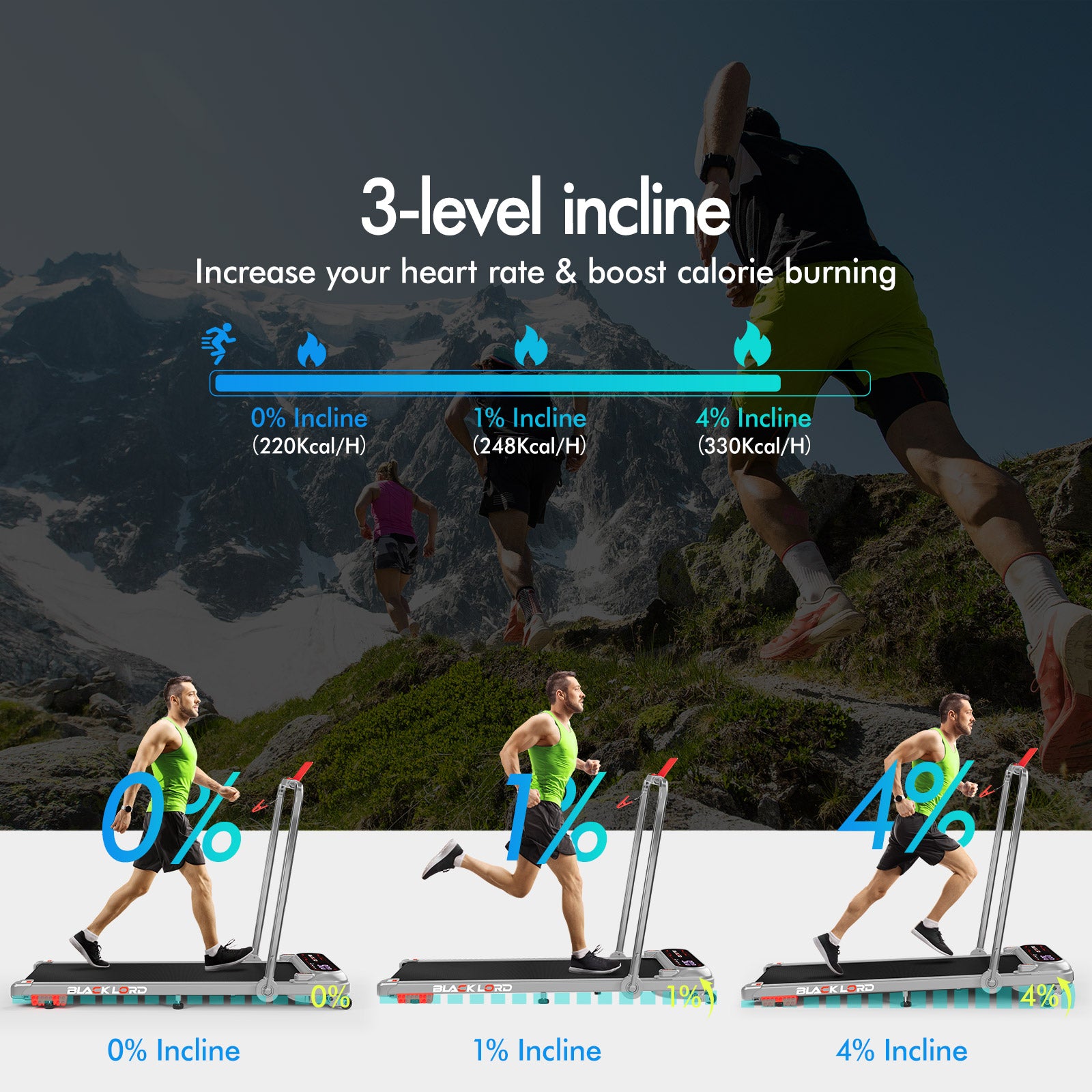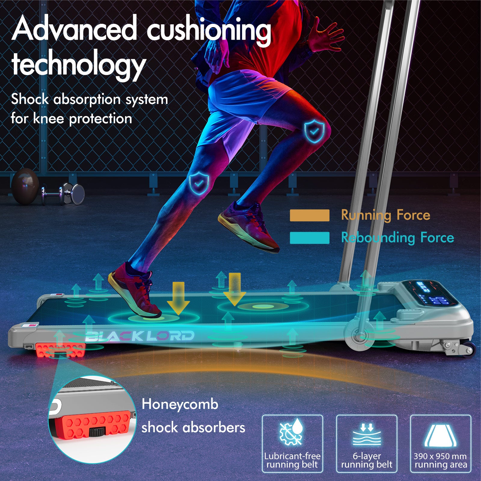 BLACK LORD Treadmill Electric Walking Pad Incline Shock Absorbers Foldable Silver