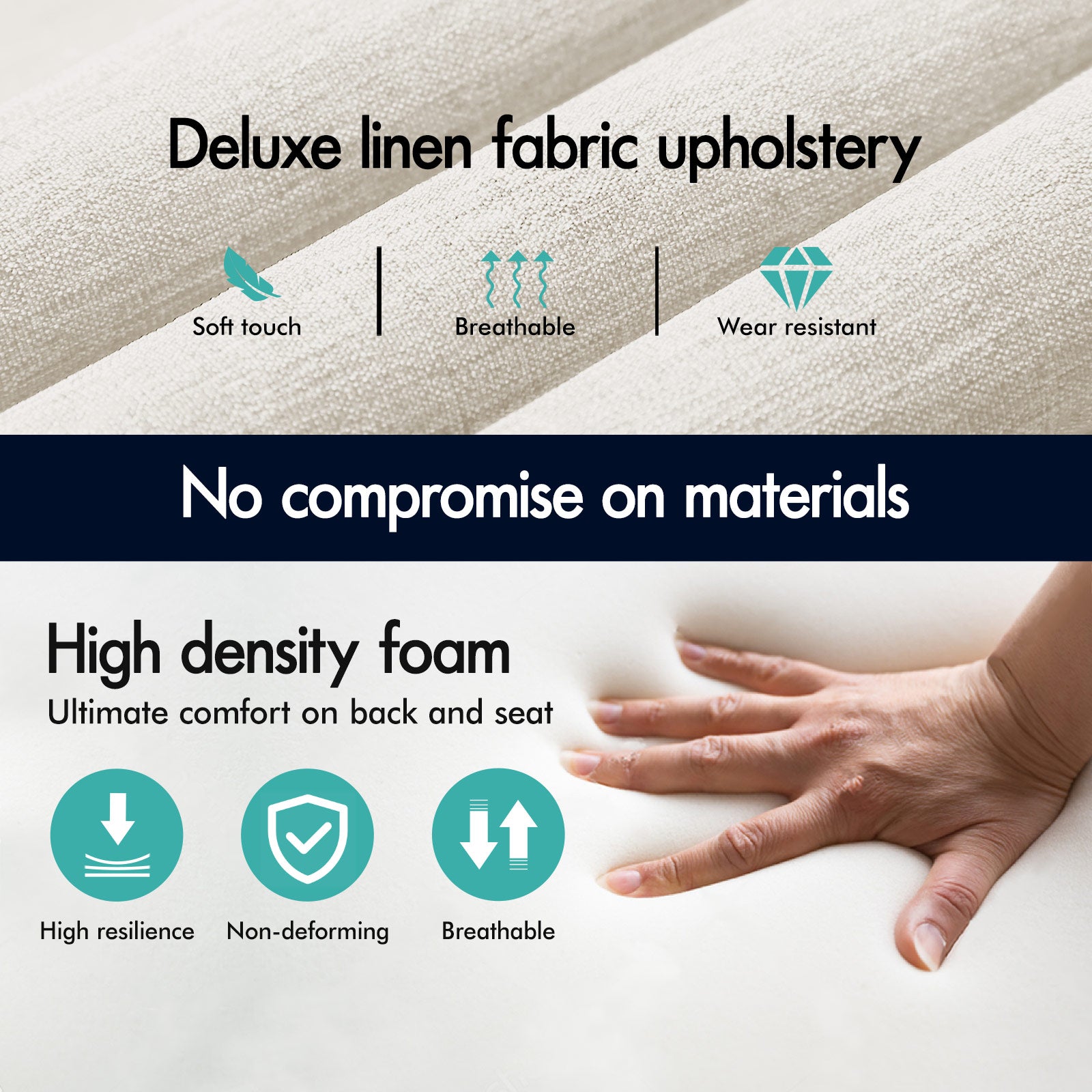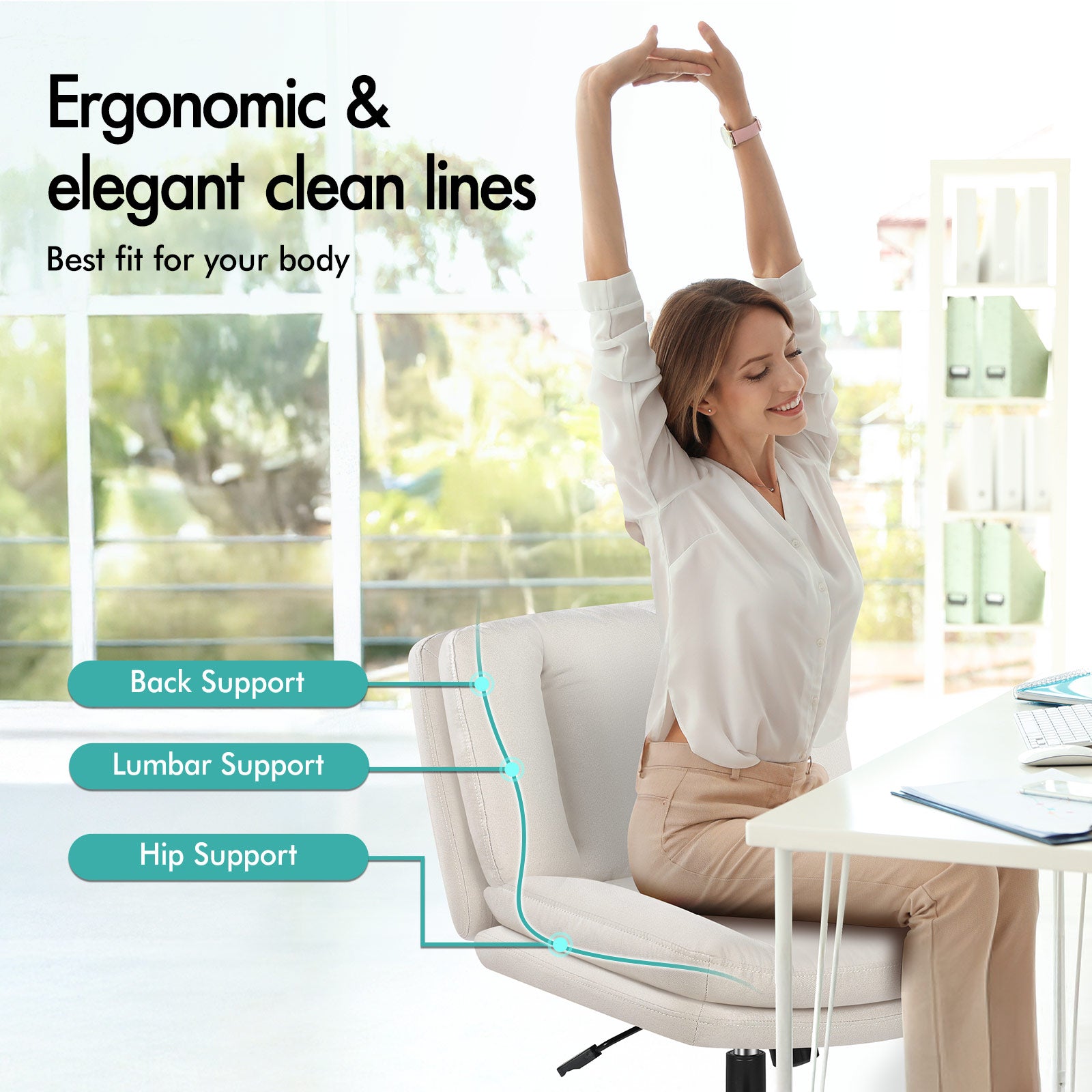 Upholstered in breathable linen fabric with generous dual-layer foam padding, it ensures lasting comfort and optimal support. Its curved seat, mid-back, and armless design contours to your body, providing ergonomic support while saving space.