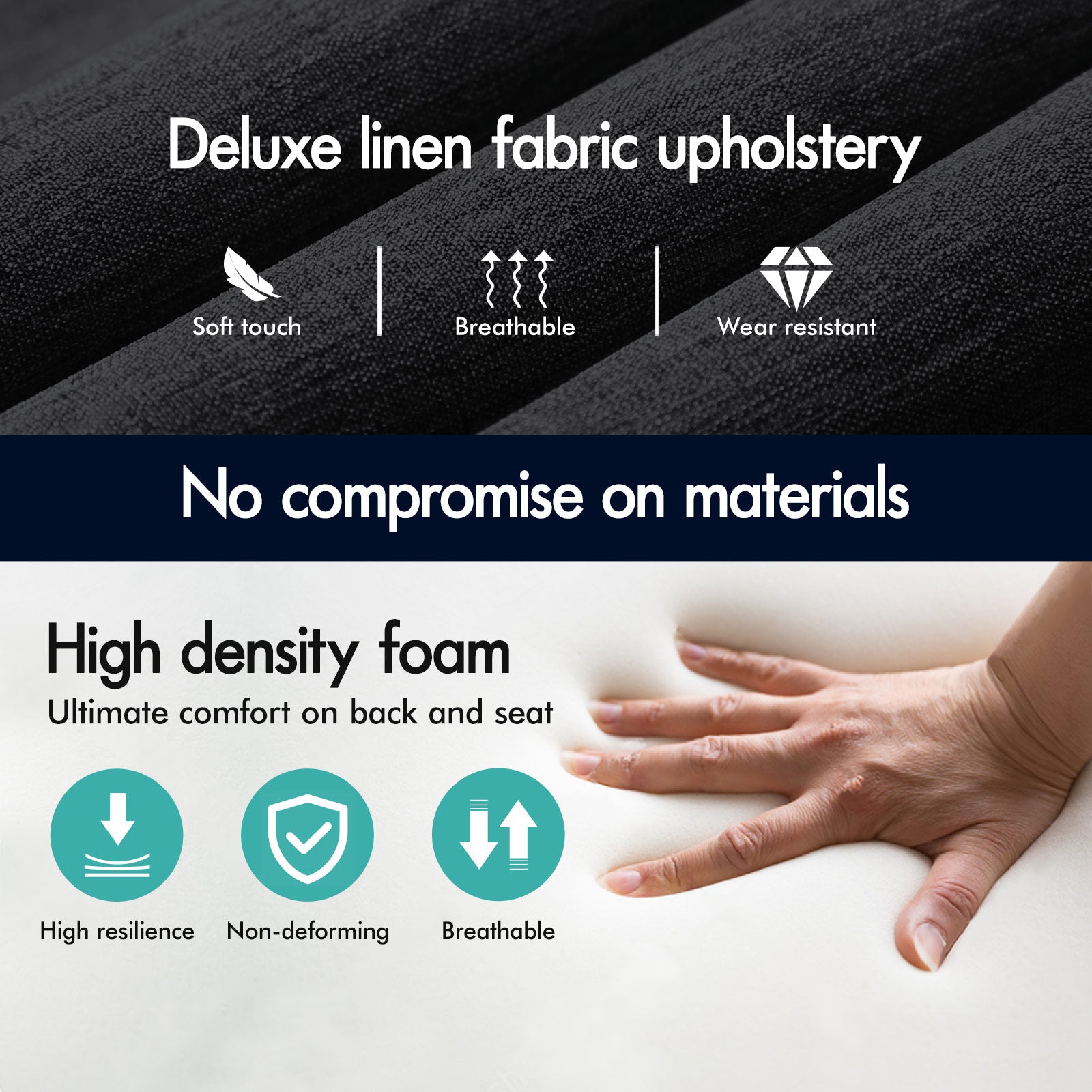 Upholstered in breathable linen fabric with generous dual-layer foam padding, it ensures lasting comfort and optimal support. Its curved seat, mid-back, and armless design contours to your body, providing ergonomic support while saving space.