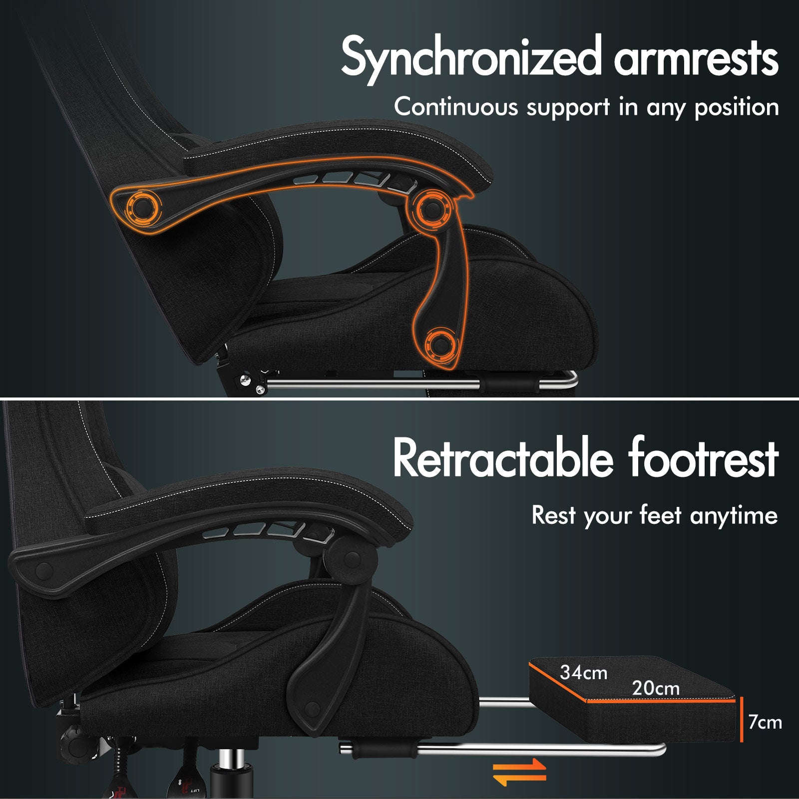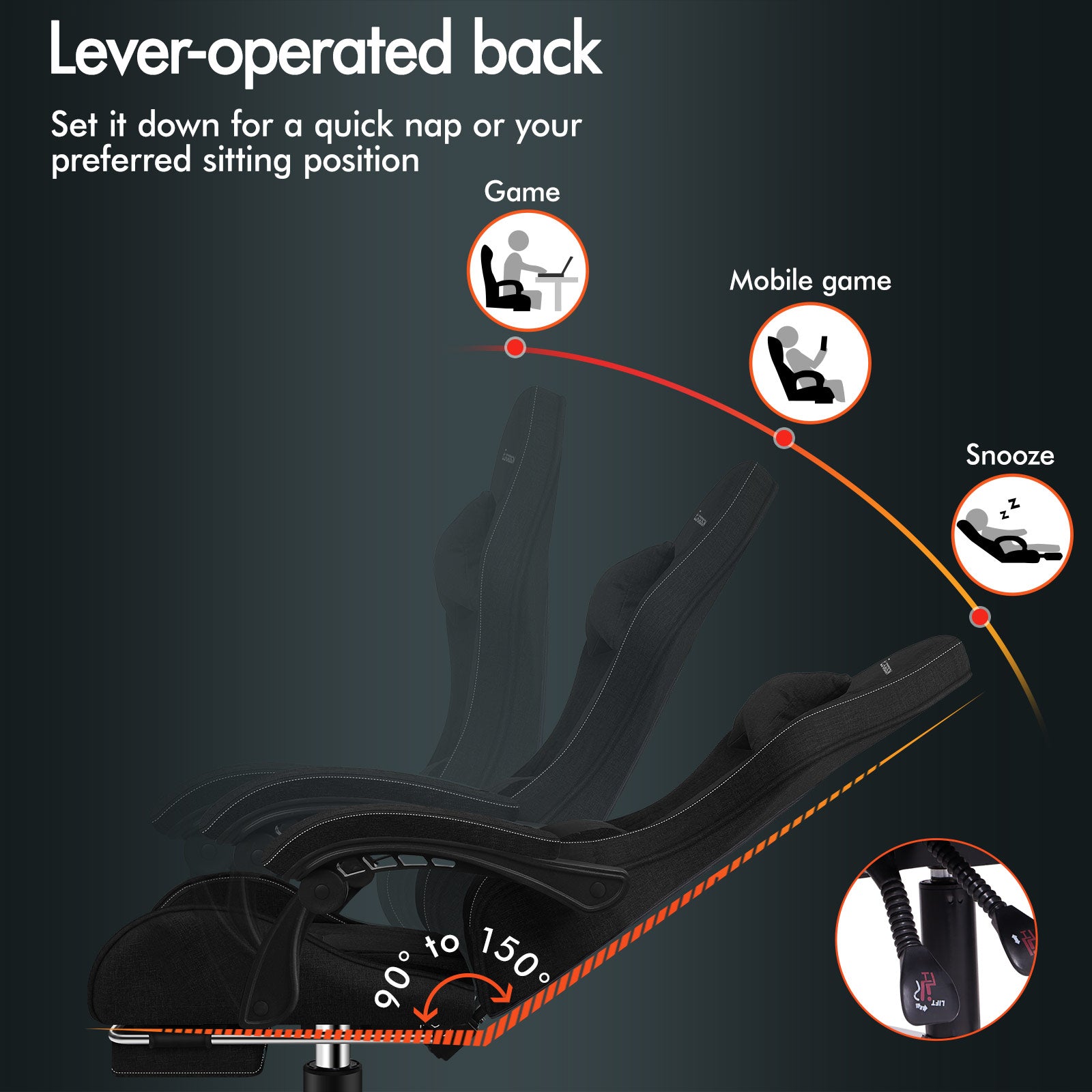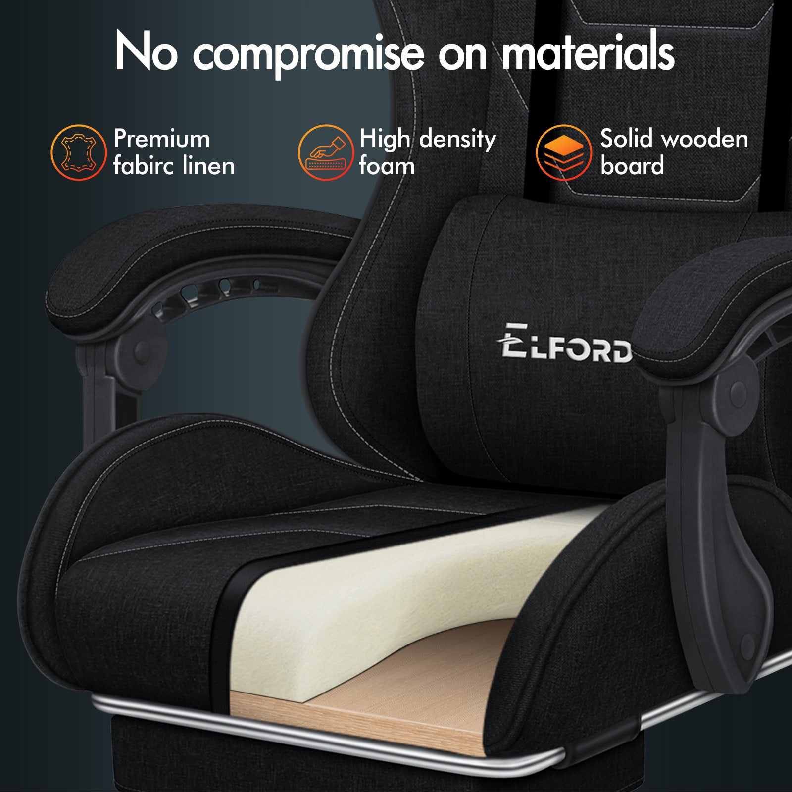 ELFORDSON Gaming Chair with 2-Point Massage Lumbar Cushion, 150° Reclining, Fabric, Black