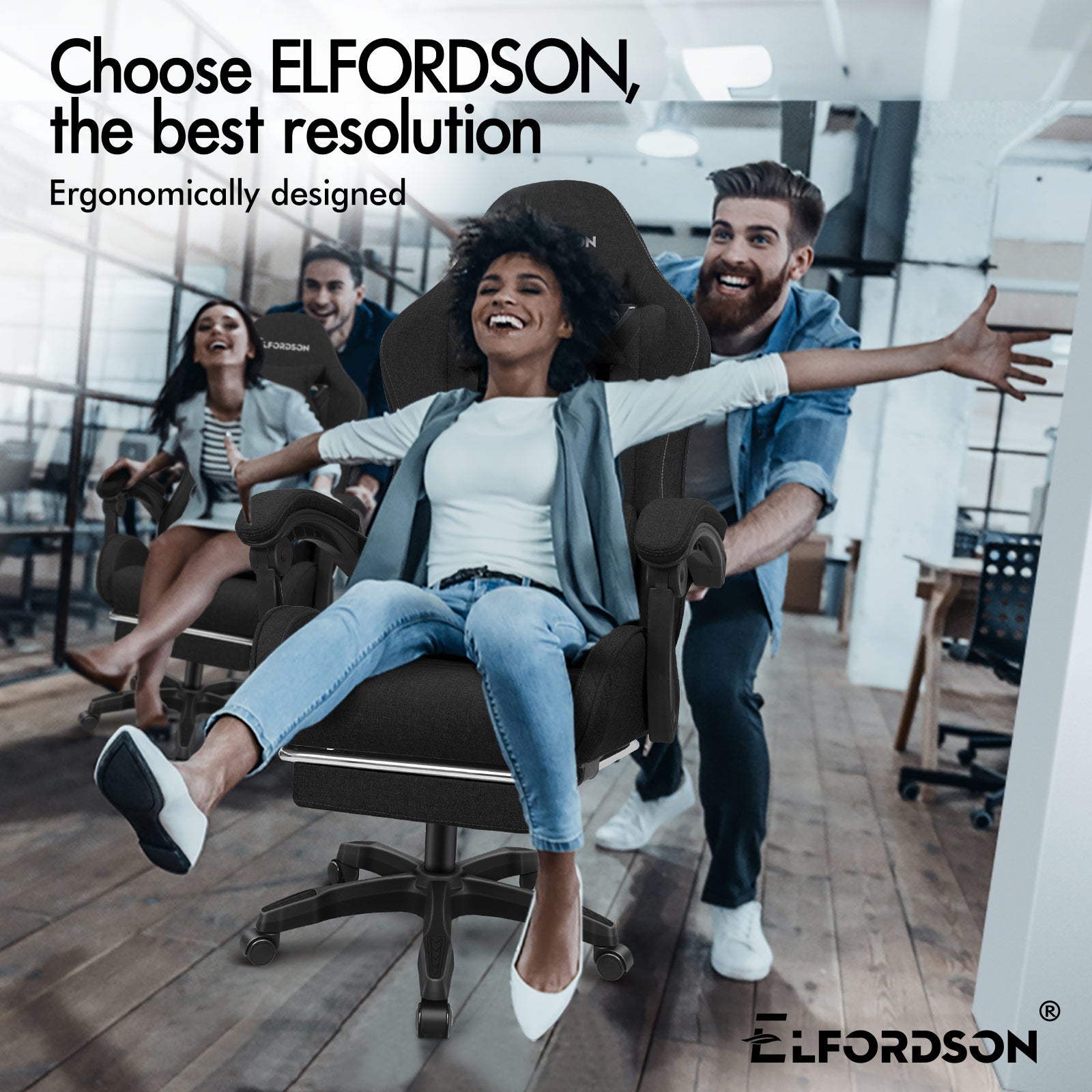 The Elfordson® range is available in multiple colours and designs, browse our store and choose one that best suits you or your room. Take the stress out of work and experience superior comfort at your desk - order your gaming office chair today!