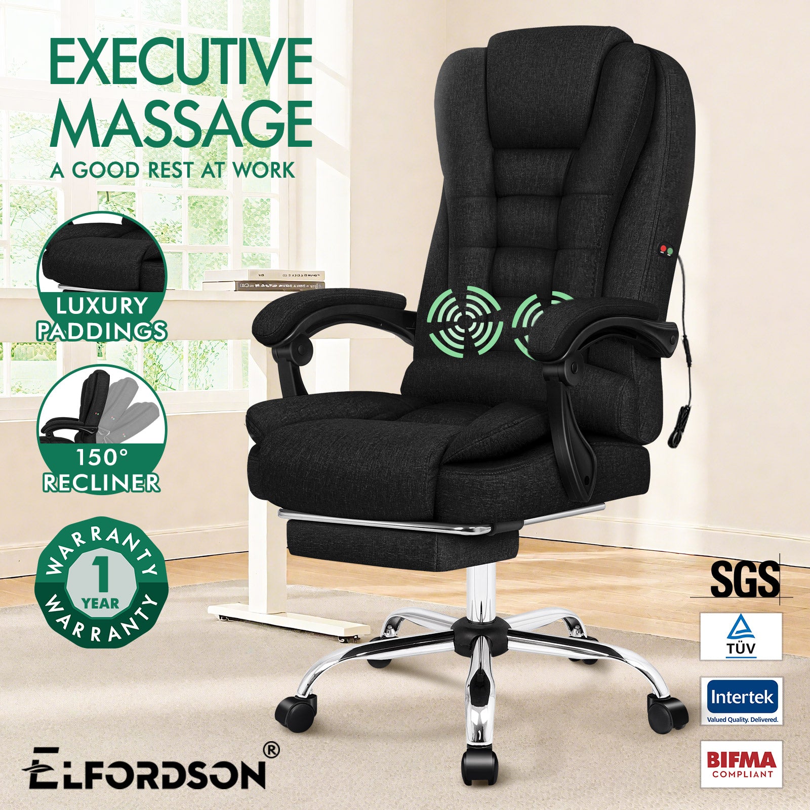 ELFORDSON Massage Office Chair Executive Seat Fabric Black