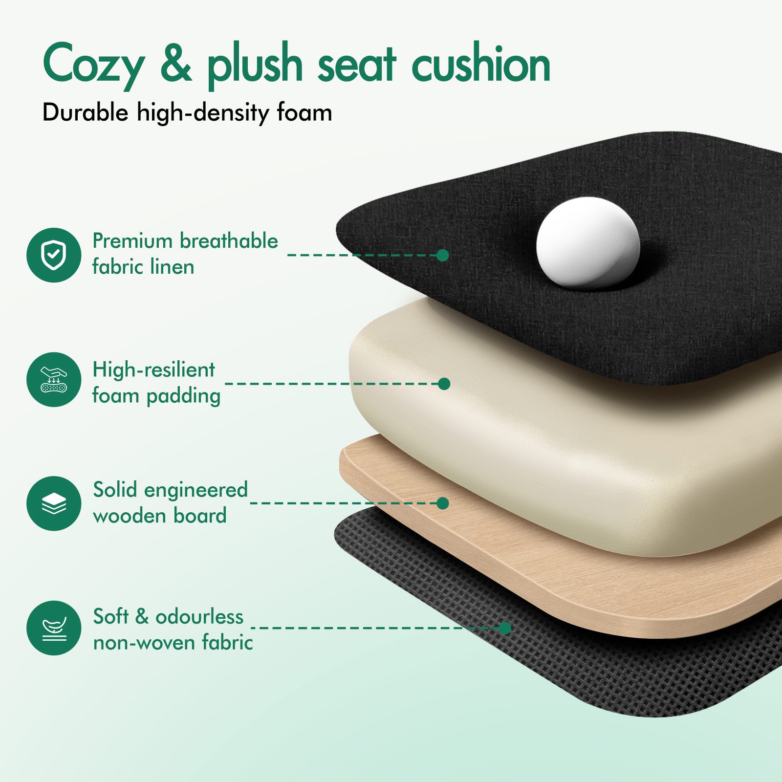 * Triple-layer seat: Linen fabric + resilience foam + wooden board