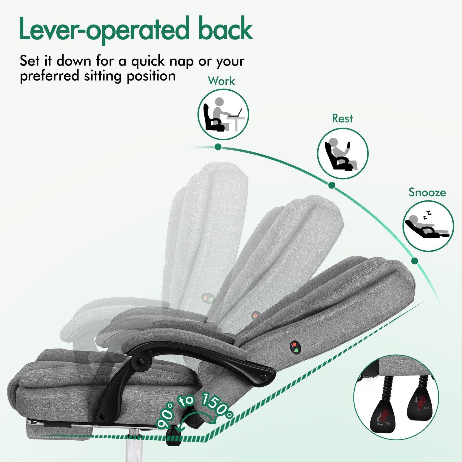 * Up to 150 degree back recline adjustment