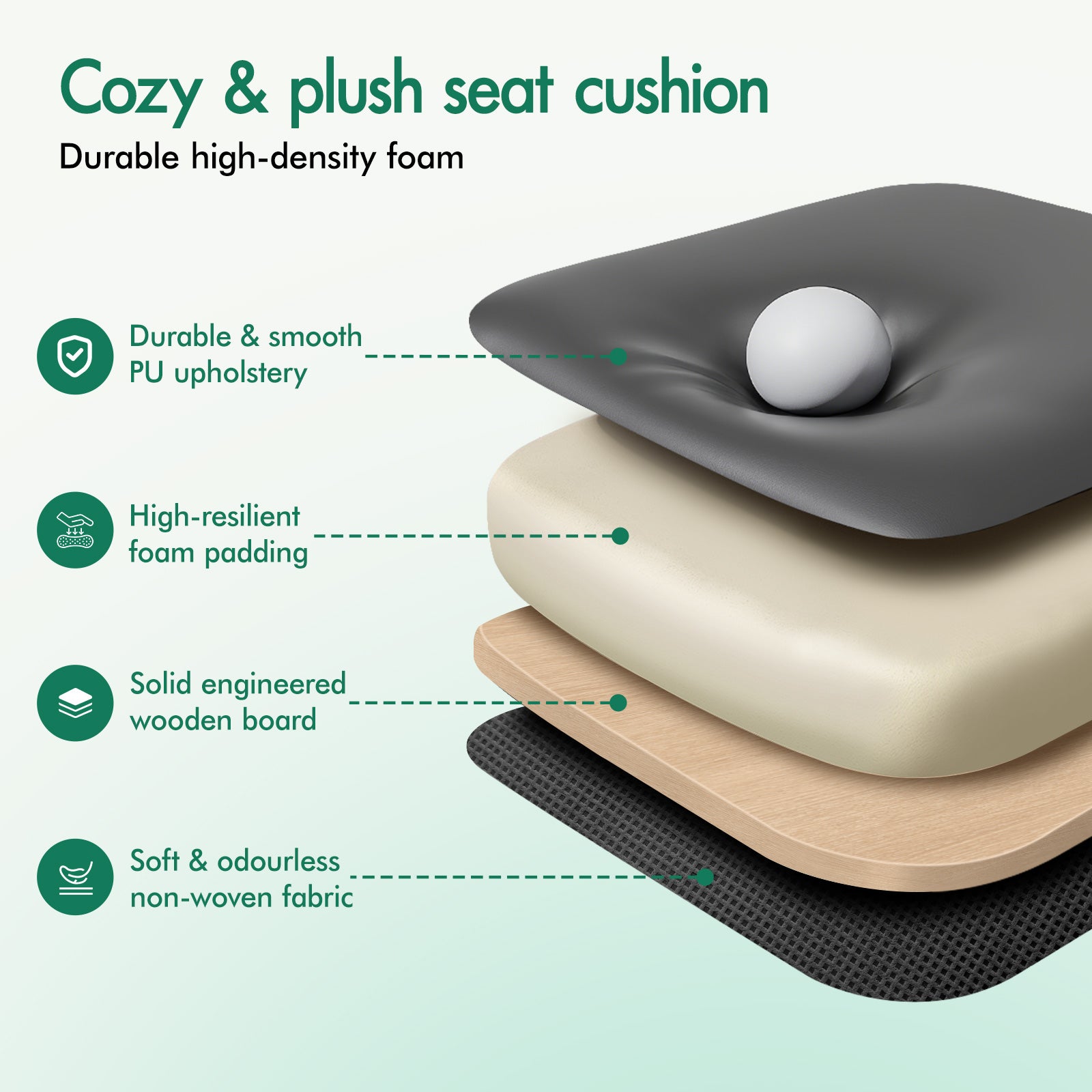 * Triple-layer seat: PU leather + resilience foam + wooden board