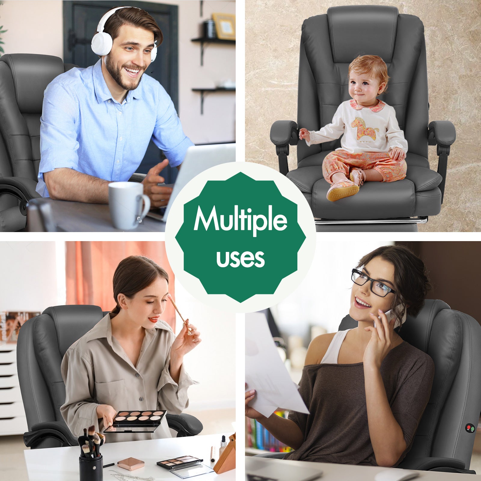 The Elfordson supreme massage office chair is born for professionals, smart working executives, who spend hours at desk every day. It is a unique reward for you, and an exclusive comfort at work.