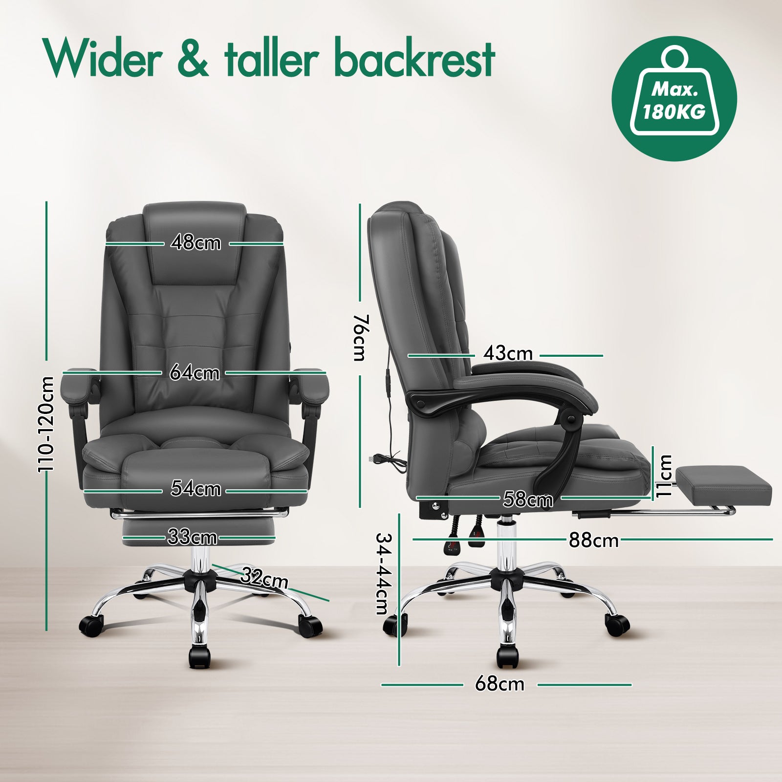 * High weight capacity: 180kg