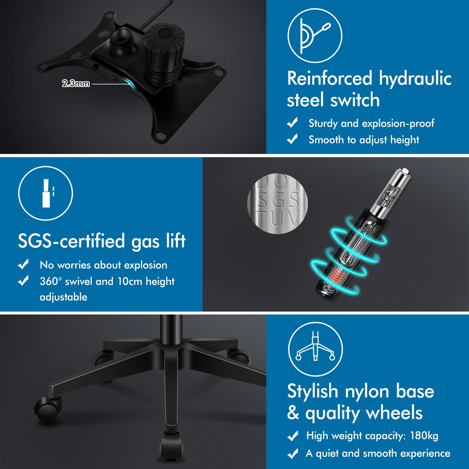 * High weight capacity: 180kg