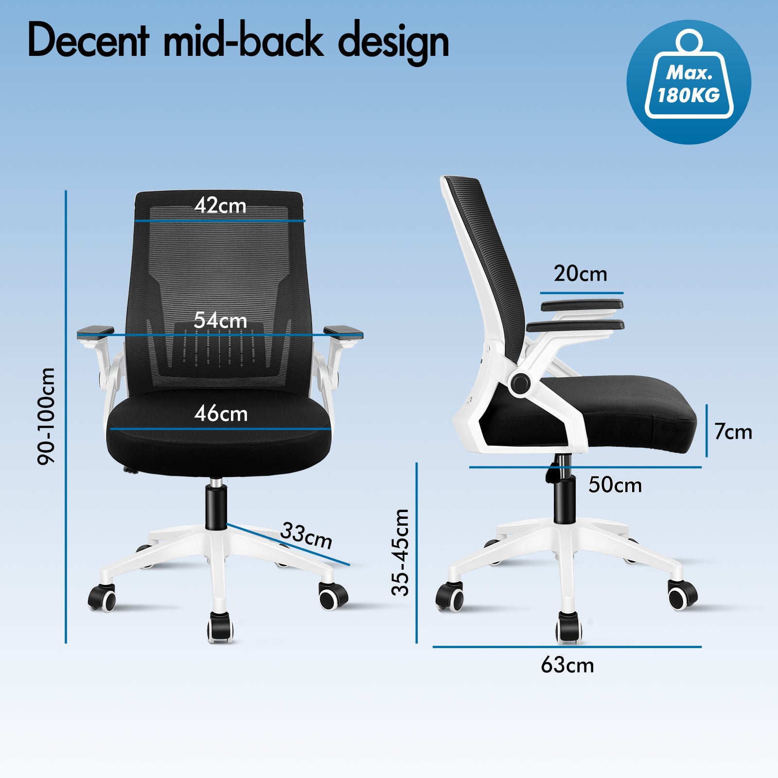 This computer chair features an ergonomic S-curve with a non-headrest design to set your shoulder free, medium back for easy movement. The advanced mesh upholstery used on the back provides ultimate support, also eliminating the risk of sagging. Additionally, the desk chair comes with horizontal adjustable and retractable armrests that fit under your desk as you wish.