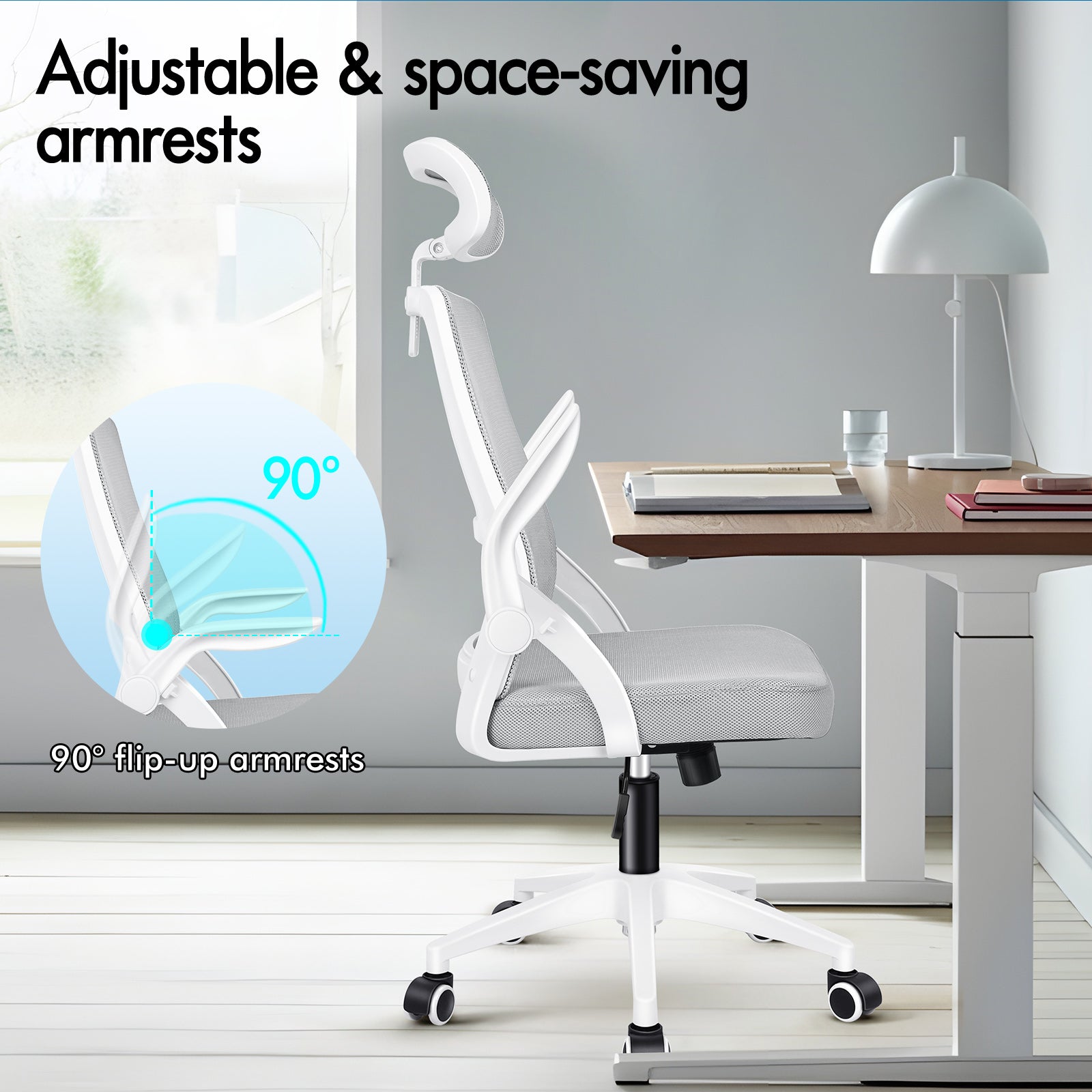 * Retractable armrests to fit under your desk