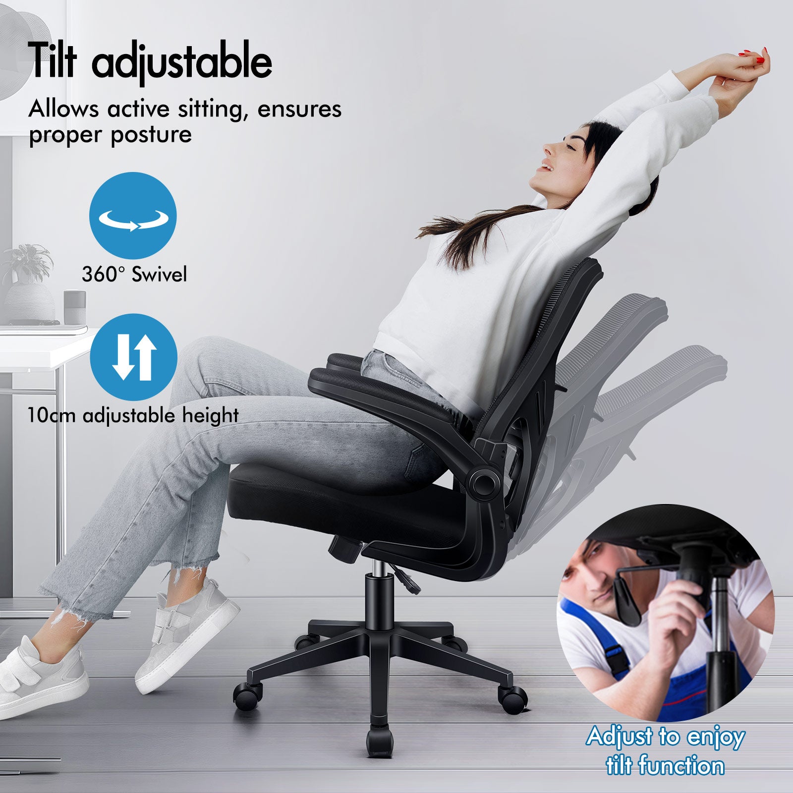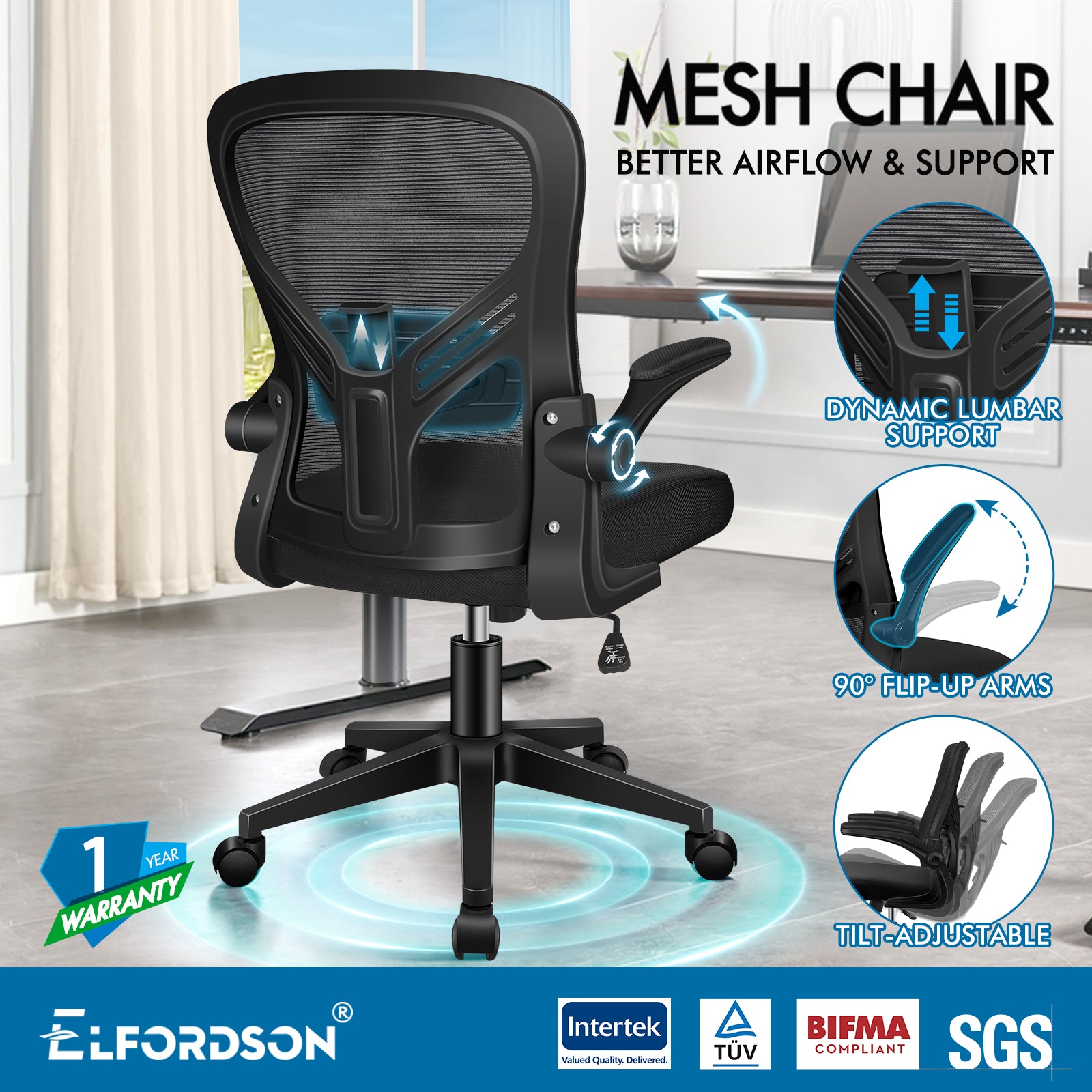 ELFORDSON Mesh Office Chair Executive Tilt Fabric Computer Work All Black