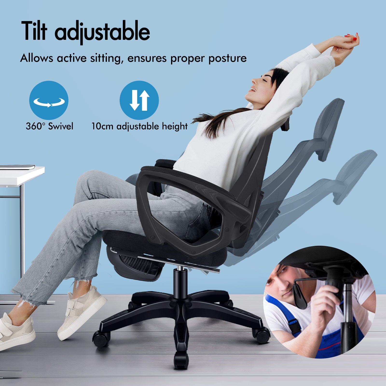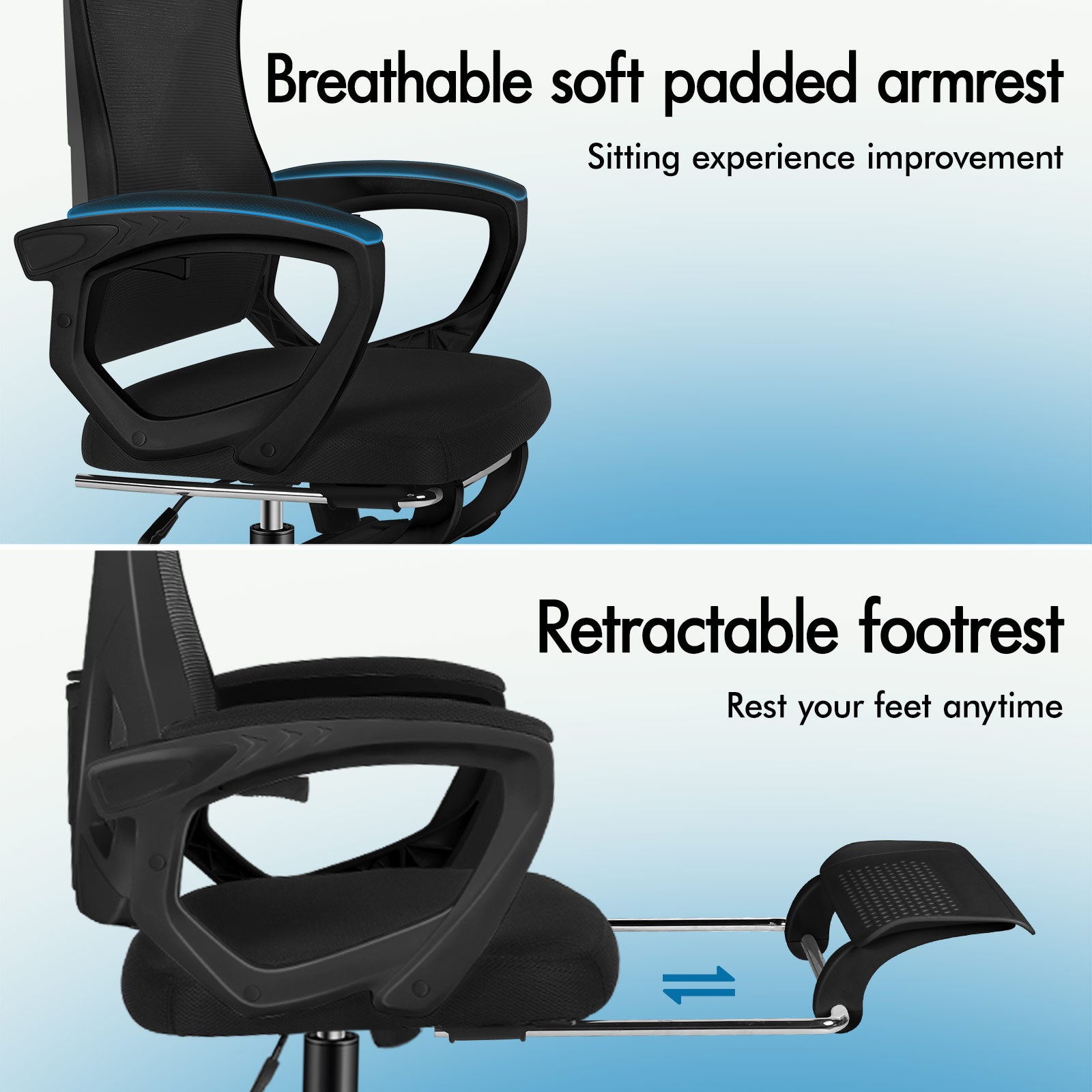 Featuring ergonomic high back design with built-in adjustable lumbar support, this computer chair suits the curvature of your spine. Upholstery crafted from premium mesh fabric and generous foam paddings, the desk chair offers perfect support to make you relaxed, allowing you to work or play at your peak for long periods of time in optimal comfort.