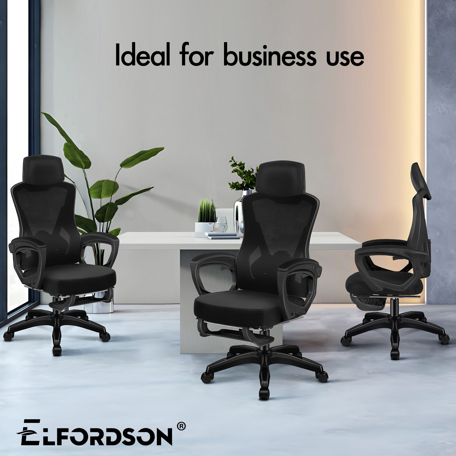 ELFORDSON Mesh Office Chair Racing Executive Fabric Seat Recliner All Black