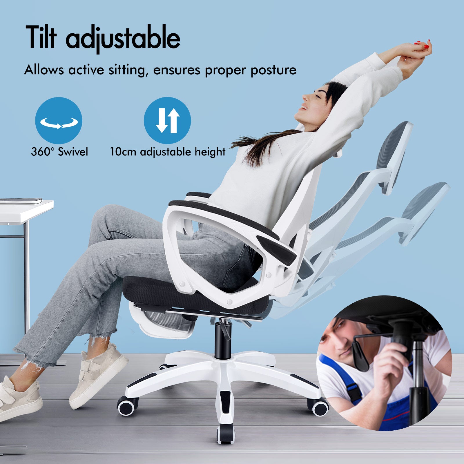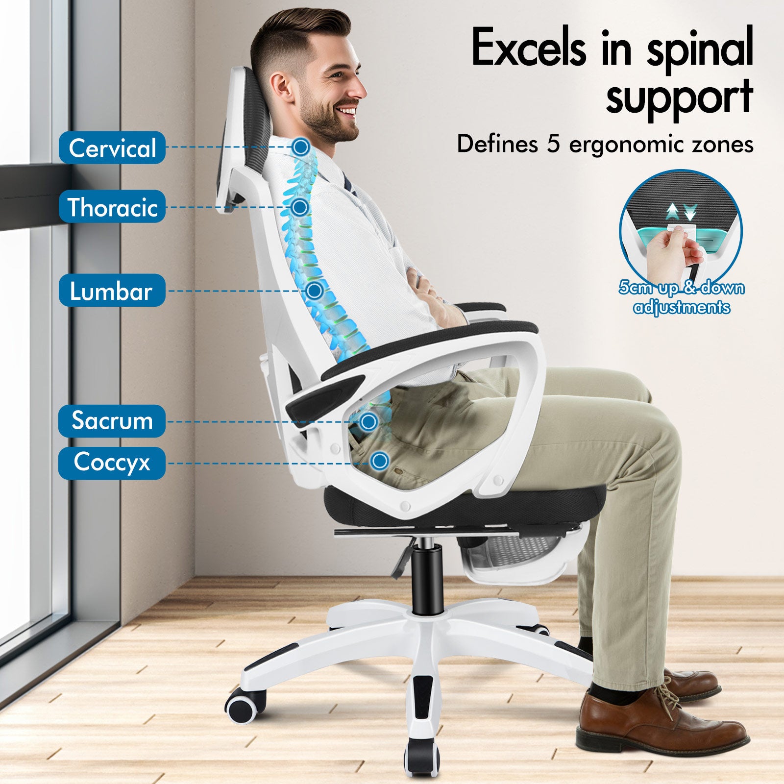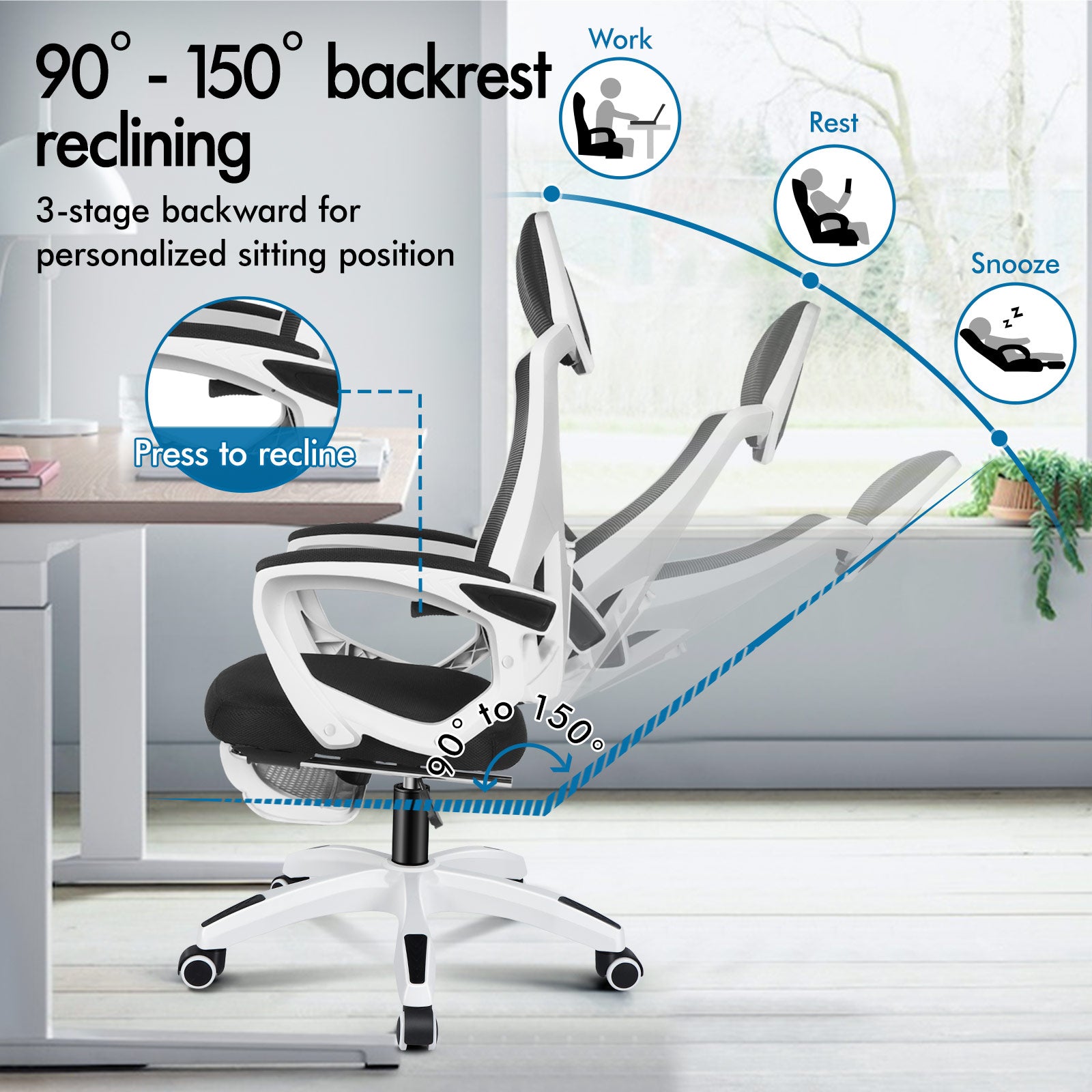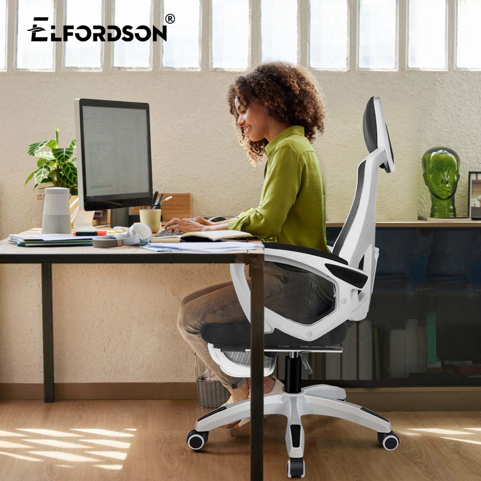 ELFORDSON Mesh Office Chair Racing Executive Fabric Seat Recliner White and Black