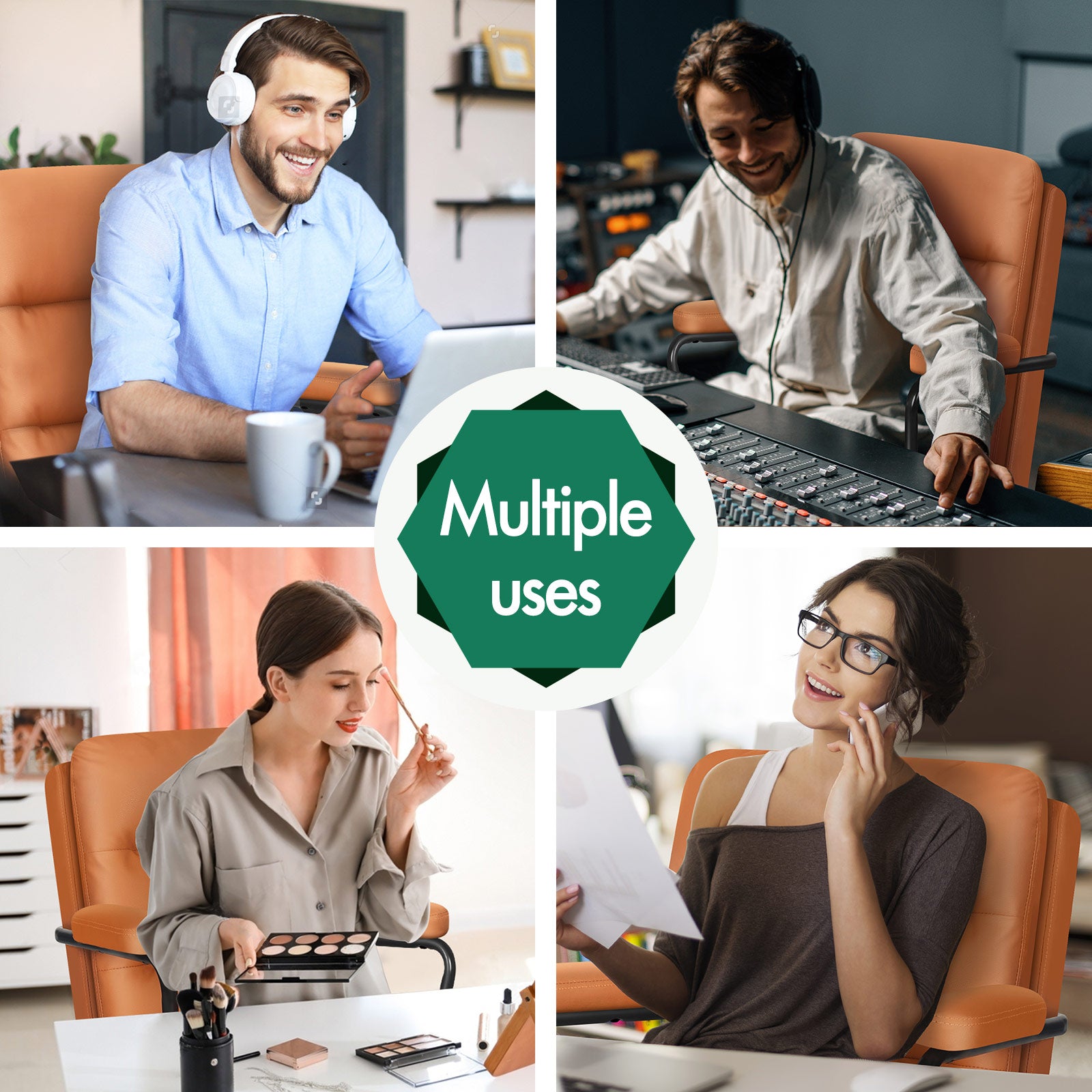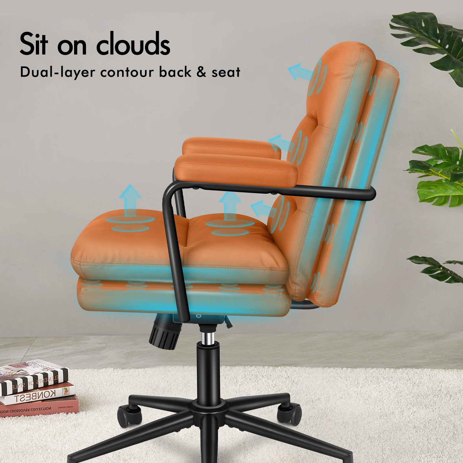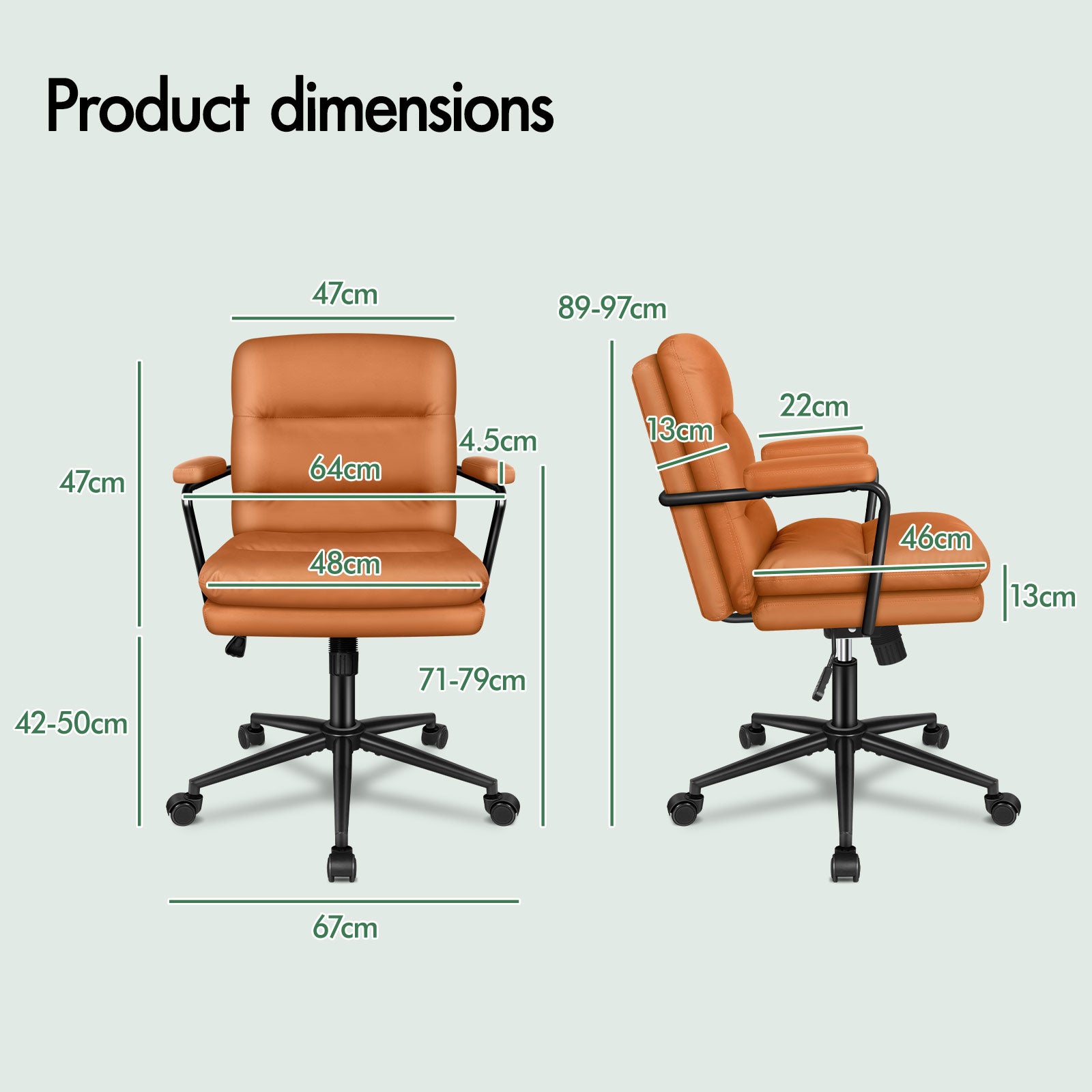 The modern concise design of this office swivel chair will soften any interior or decor you may currently have in your home or office. Upholstered in premium PU leather, the dual-layer seat and backrest are richly padded with high-resilience foam. The padded seat provides adequate support in the right places and infinite comfort whenever you want to rest and sit in the chair. Its ergonomic flared armrests design cradle your arms in a natural position, relieving unnecessary shoulder and arm strain and staying at your peak for long periods of time in optimal comfort.