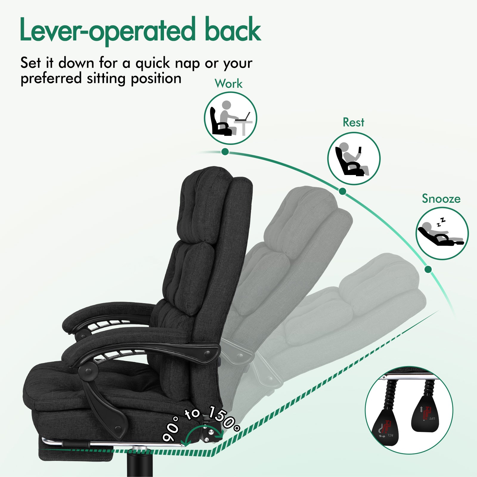 * Up to 150 degree back recline adjustment