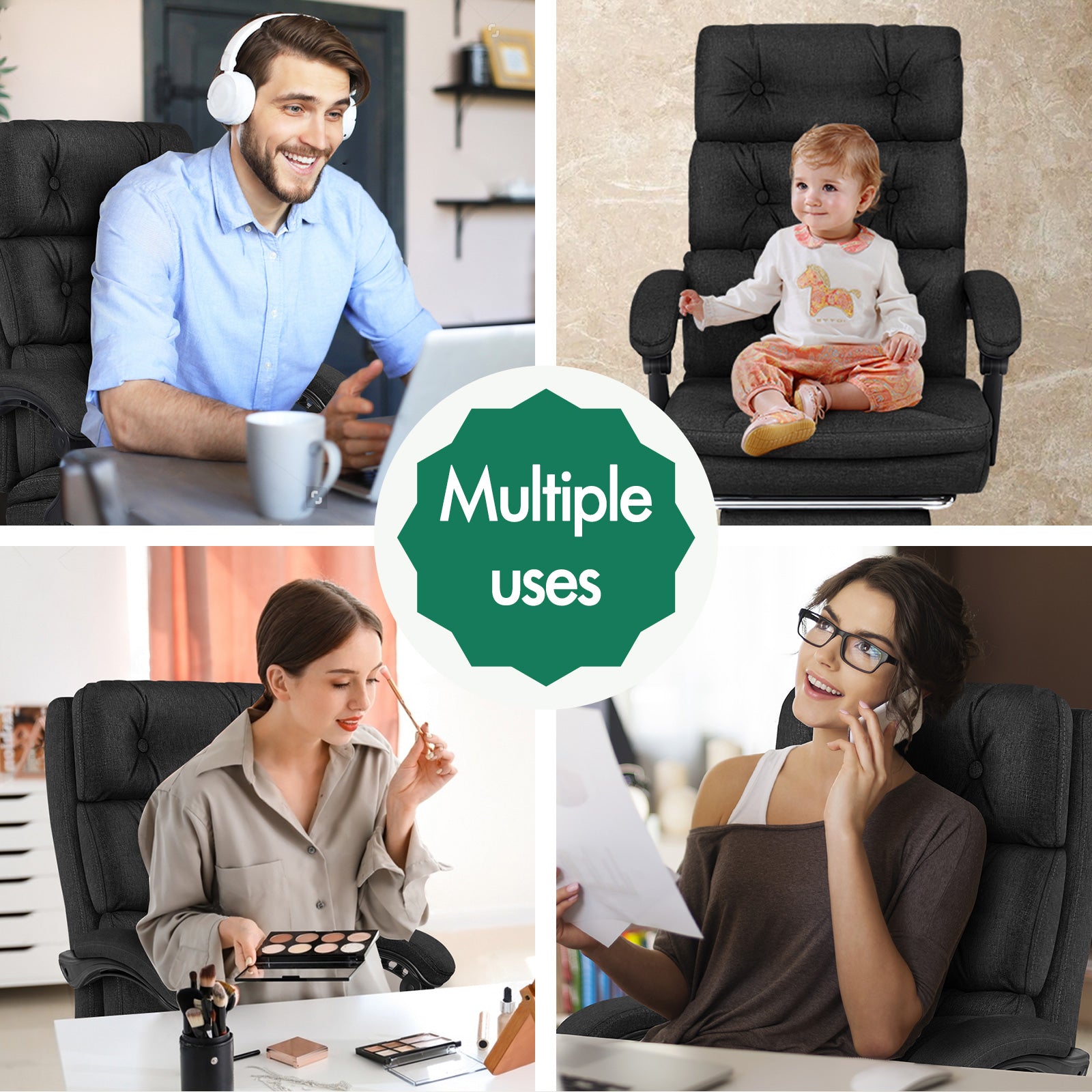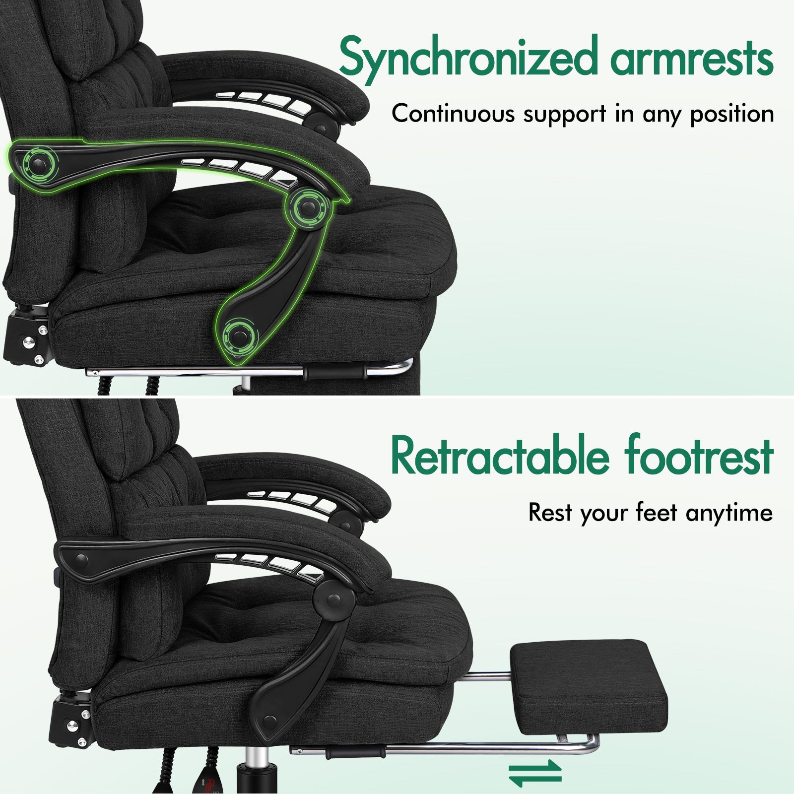 The Elfordson computer desk chair is an eternal model. It features a dual-layer back with luxurious foam paddings, to make sure you can indulge yourself each time sitting on it. Made with breathable & durable linen fabric, this modern reclining chair also enhances the atmosphere of the room it stays. An elite in quality and design, your solution to true comfort.
