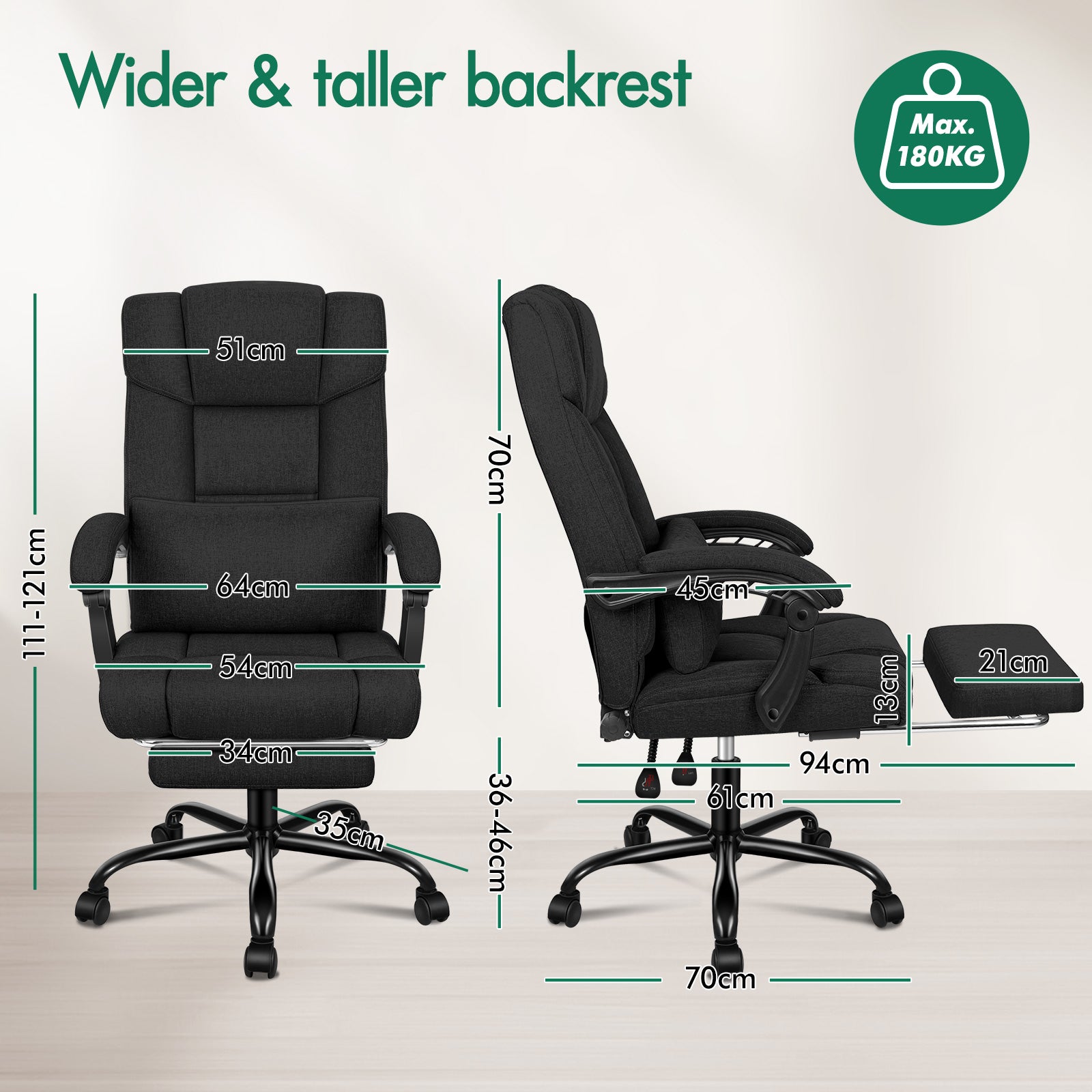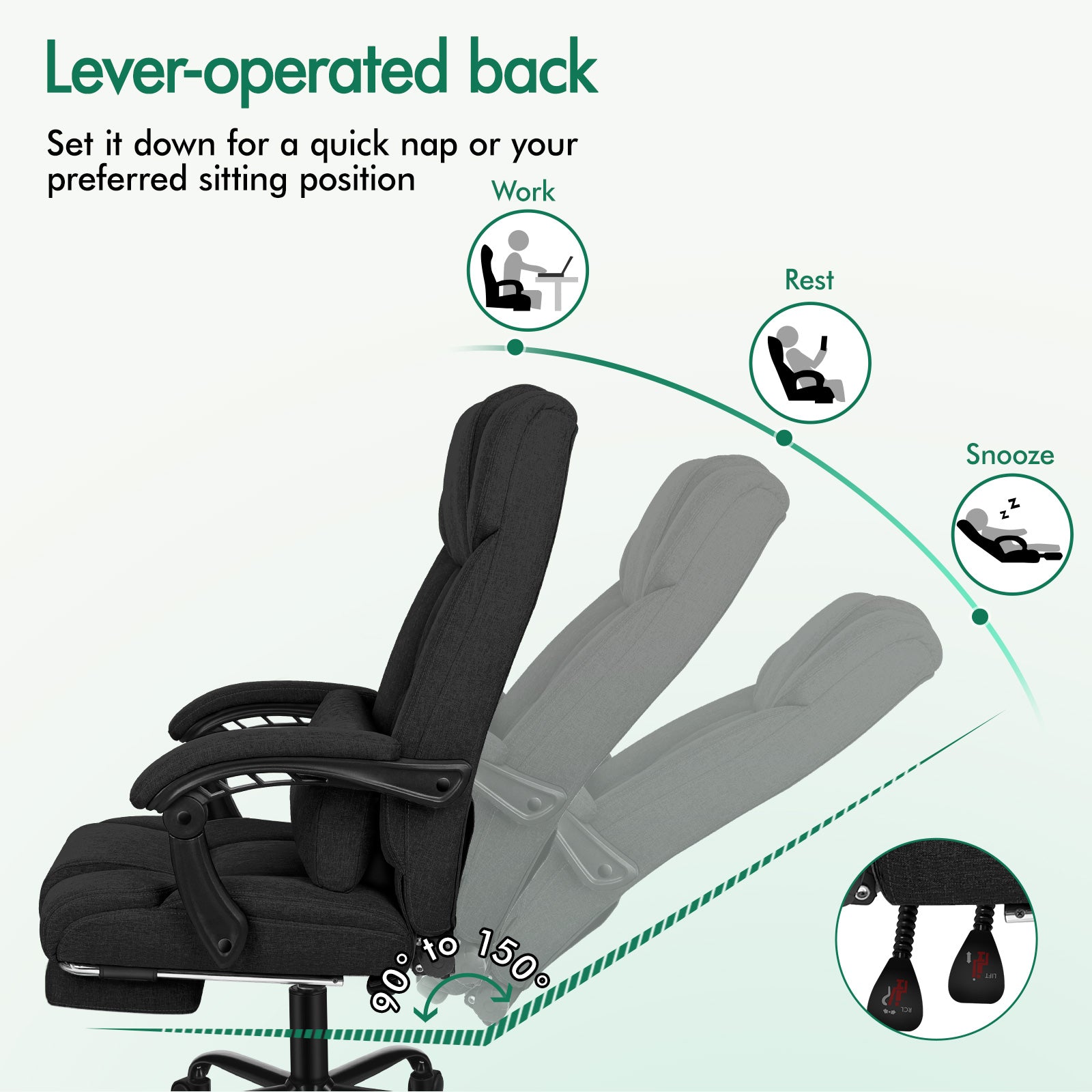 ELFORDSON Office Chair Executive Computer Gaming Fabric Seat Recliner Black