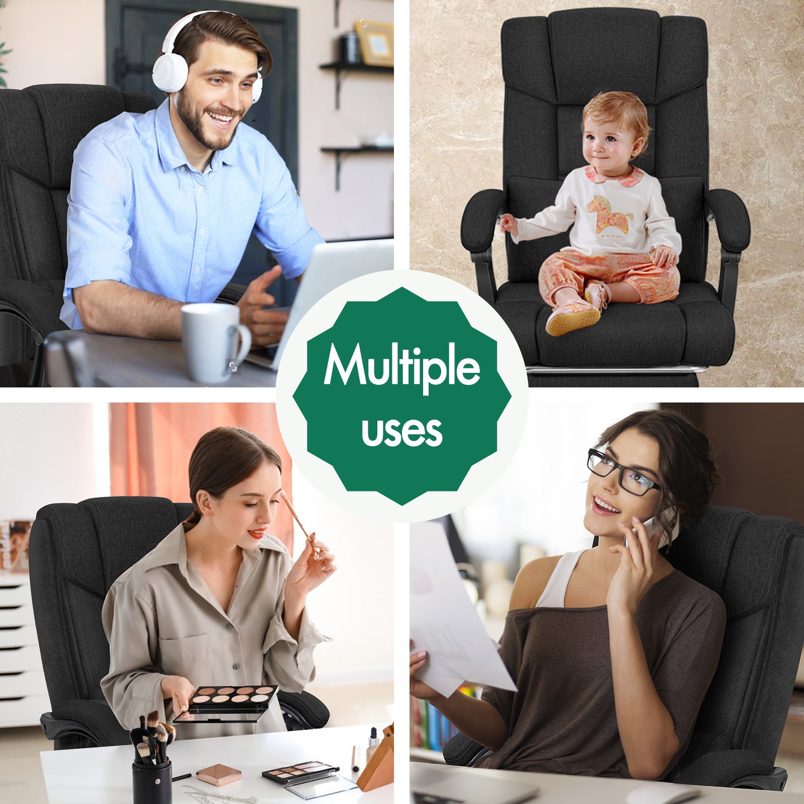The Elfordson computer desk chair is an eternal model. It features a dual-layer back with luxurious foam paddings, to make sure you can indulge yourself each time sitting on it. Made with breathable & durable linen fabric, this modern reclining chair also enhances the atmosphere of the room it stays. An elite in quality and design, your solution to true comfort.