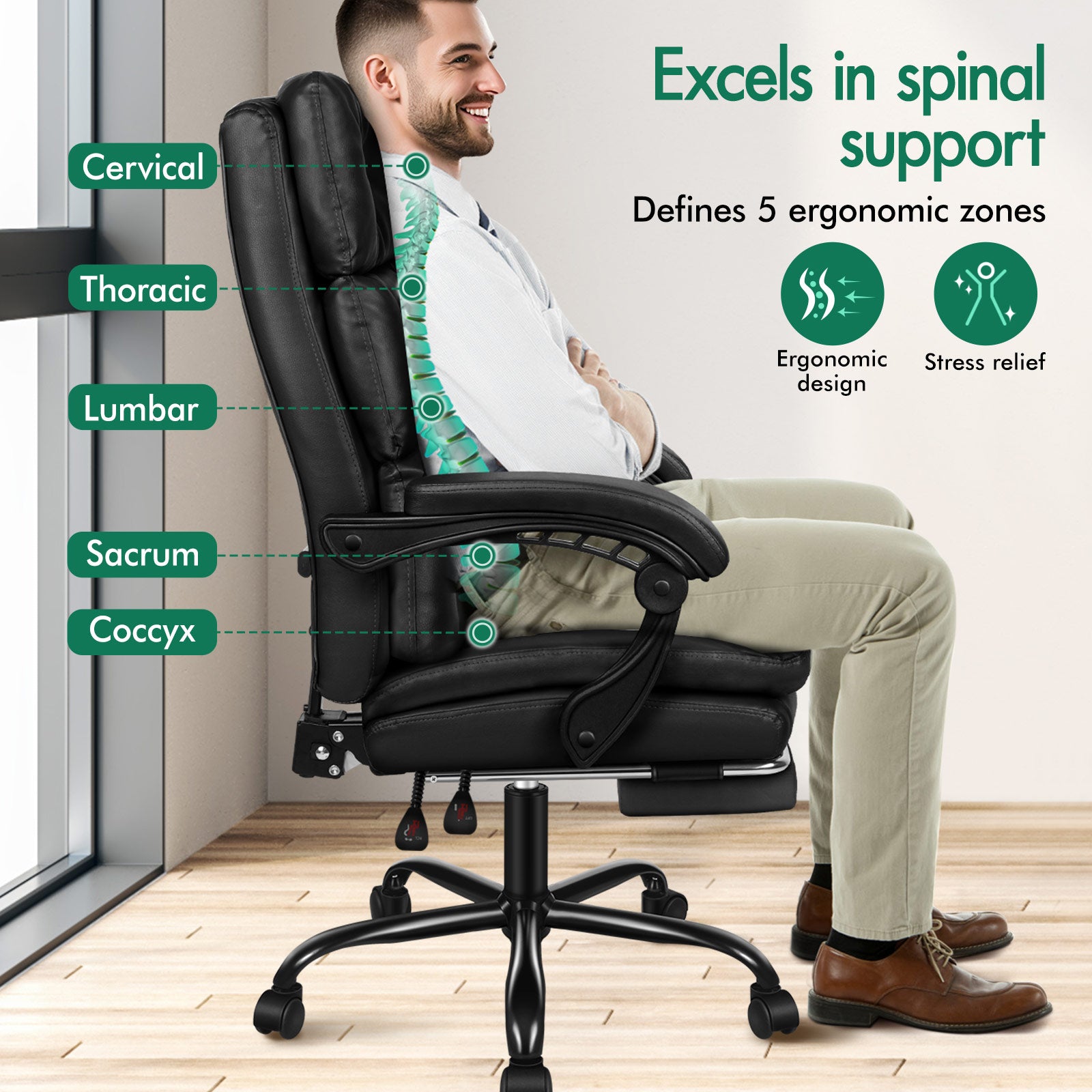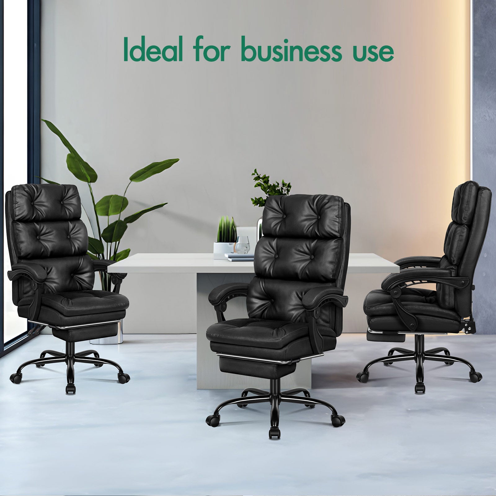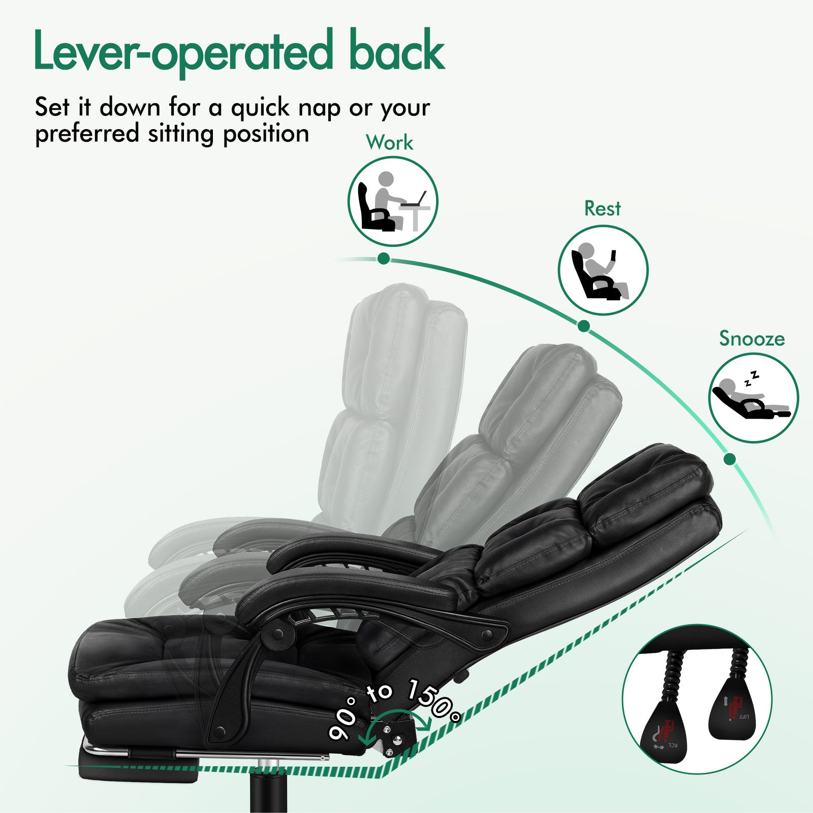 ELFORDSON Office Chair Executive Computer PU Leather Seat Work Recliner Gaming PU Leather Black