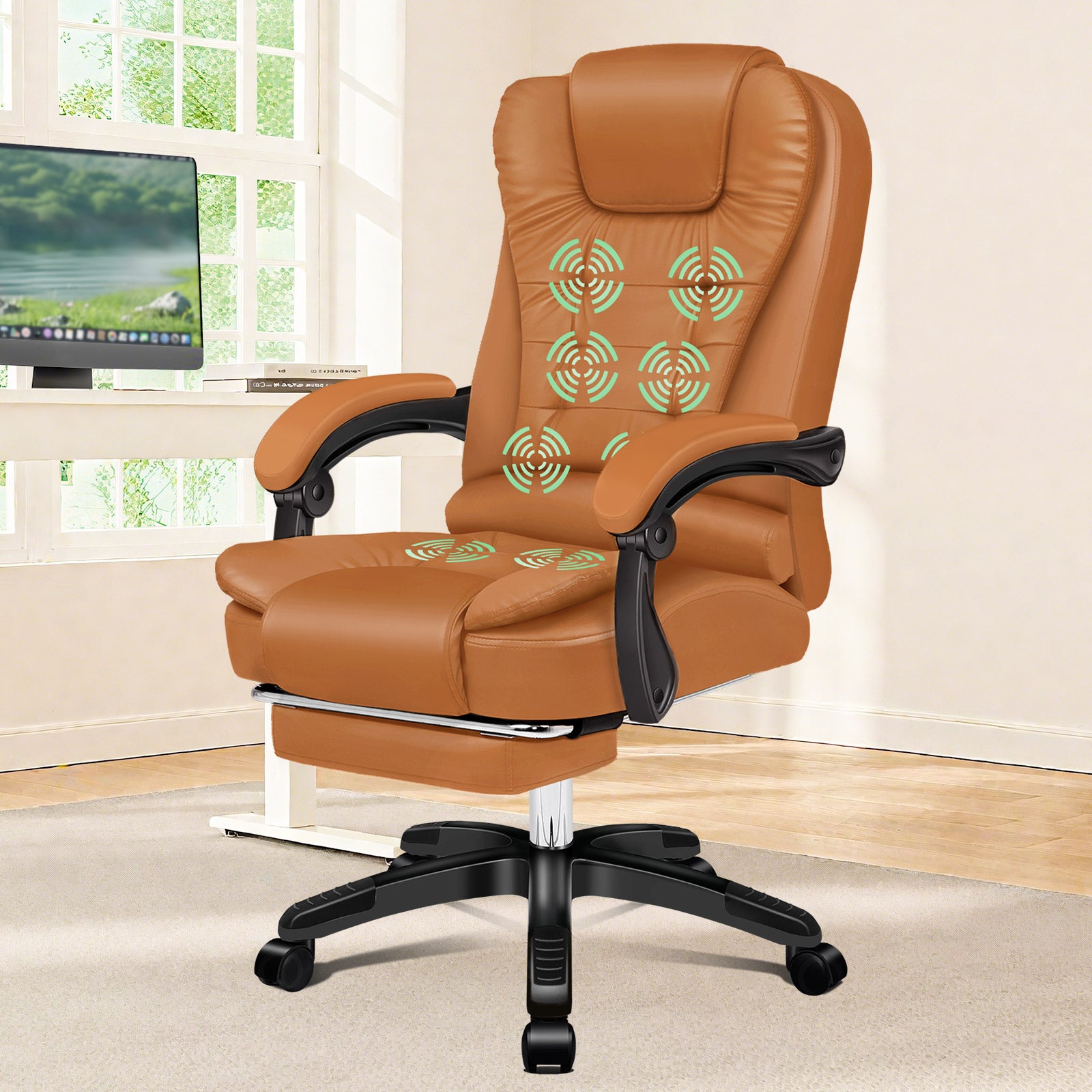 ELFORDSON Office Chair with 8-Point Massage and Heat Function, Brown